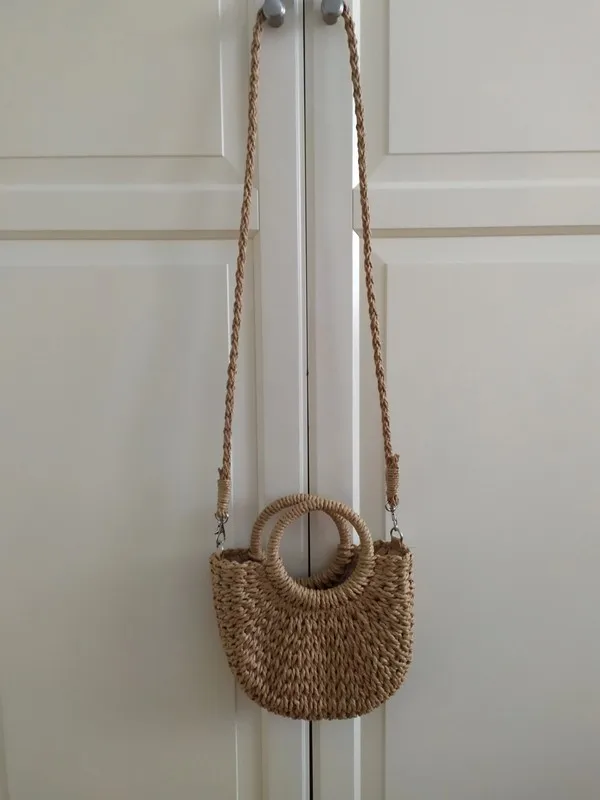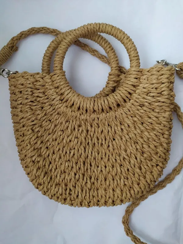 Yogodlns ручная работа полукруглая Плетеная соломенная сумка из ротанга Летняя женская сумка-мессенджер через плечо Маленькая Пляжная сумка для девочек Новинка