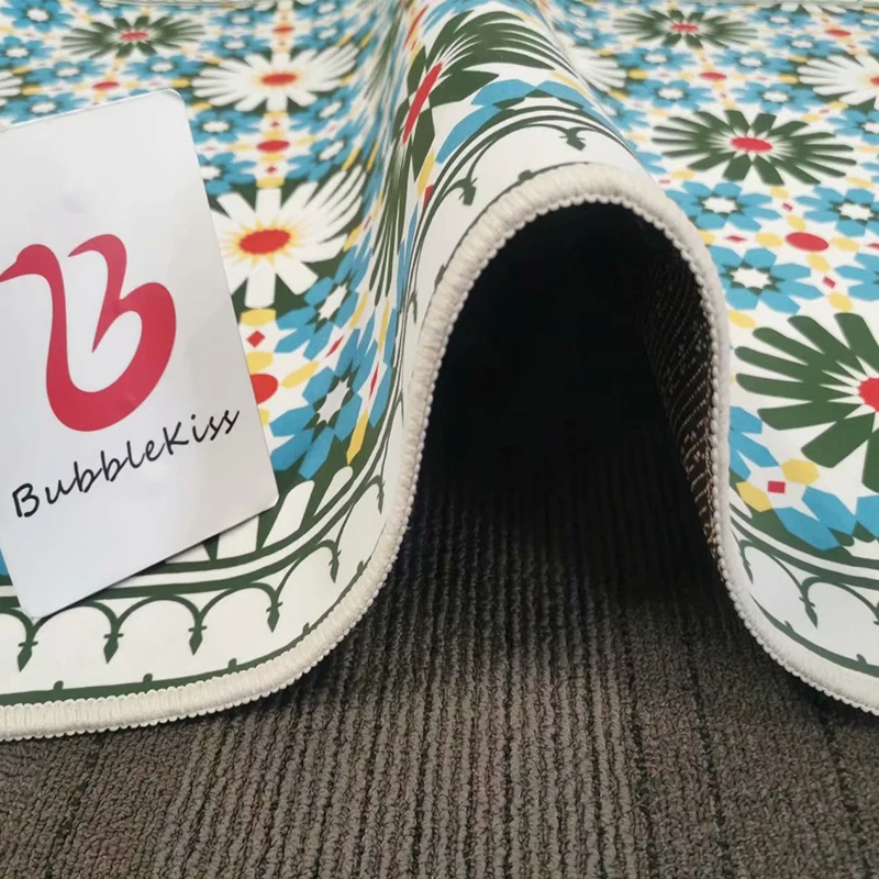 (1) мягкие и удобные, не скользят, не выцветают (2) в нижней части пластиковой ткани, износостойкая и прочная (3) экологически чистая печать и окрашивание, без вредных веществ. (4) мягкий ковер, который можно сложить для хранения.