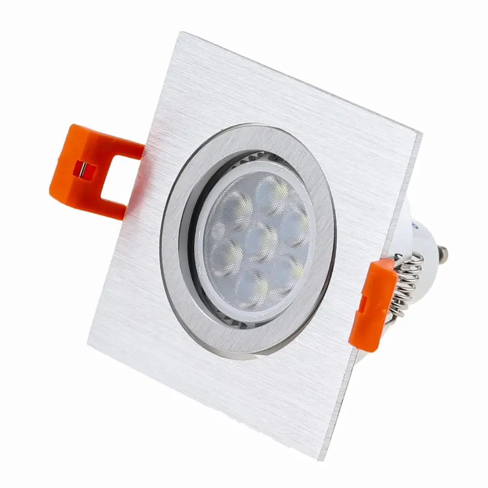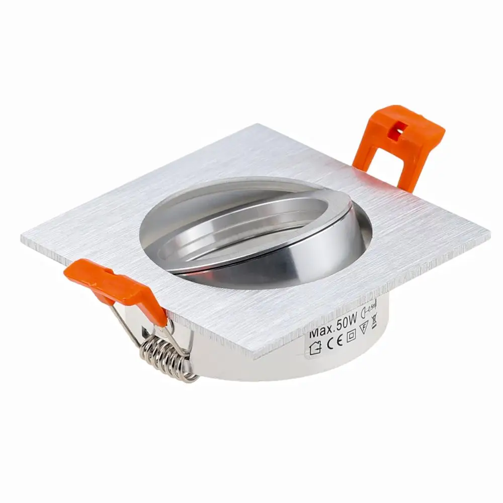 Утопленный Светодиодный точечный светильник, серебристая квадратная Регулируемая рамка для GU10 MR16, Светодиодный точечный светильник с вырезом 65 мм, фитинги для светодиодных светильников