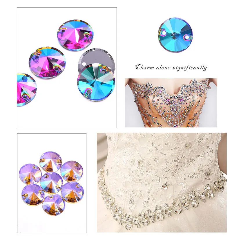 AAAAA качественные круглые стразы, пришивные стразы с плоской задней стороны, стеклянные стразы с кристаллами, цветные стразы для шитья свадебного платья B3796
