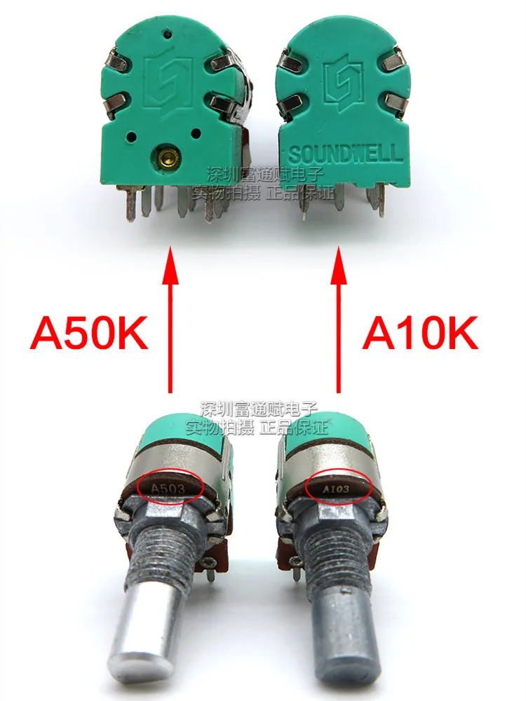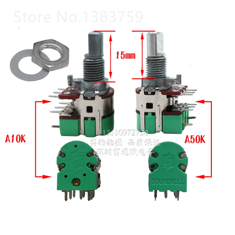 2 шт., стереоканал H120 с переключателем A50K A10K 15 мм, полуваловый потенциометр громкости