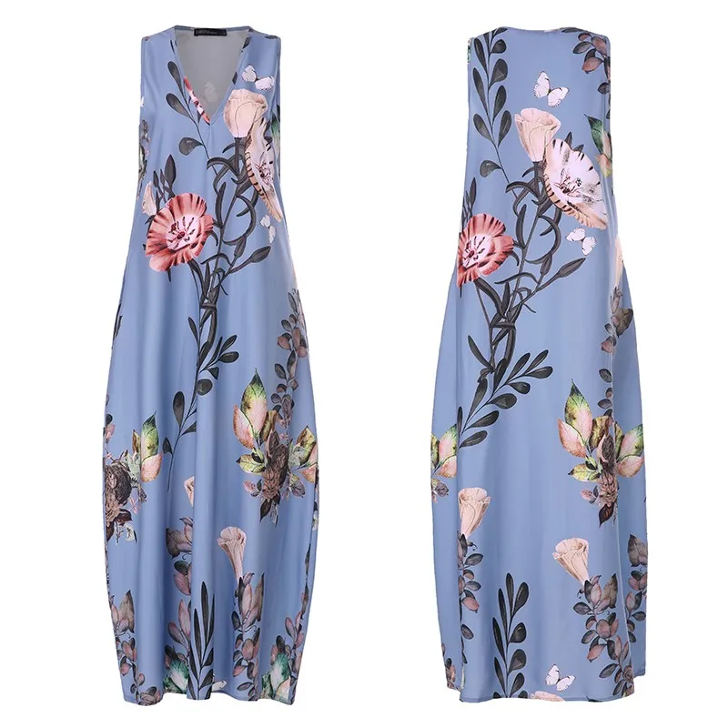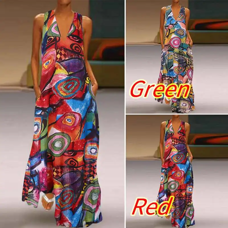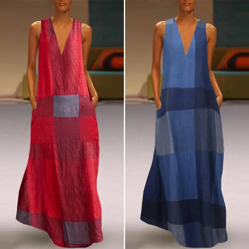 Платье макси с принтом ZANZEA 2021, женский сарафан, повседневное, летнее, длинное, с V-образным вырезом, для вечеринок, женское льняное платье, кафтан