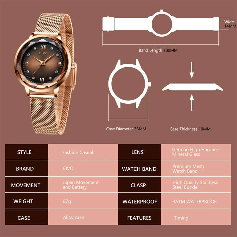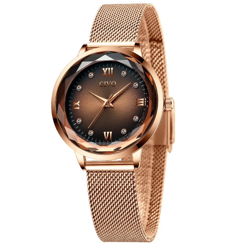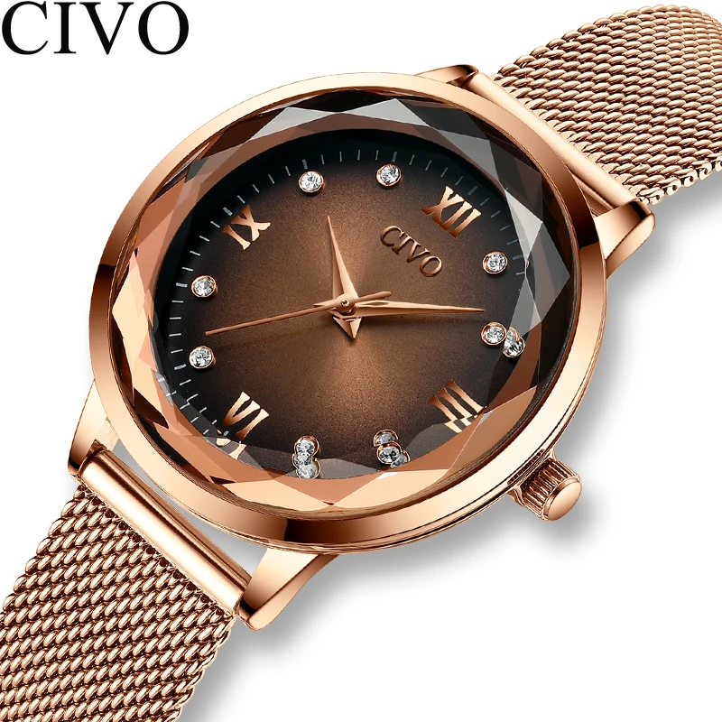 Часы наручные женские кварцевые, модные водонепроницаемые Брендовые с сетчатым ремешком из розового золота, 2021