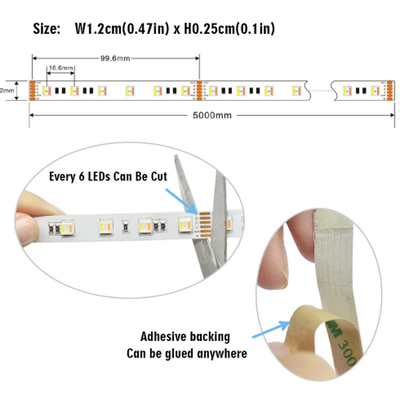 Светодиодная лента 5 м с чипом 5 в 1, RGB, CCT, RGBW, 5050 SMD, Све...