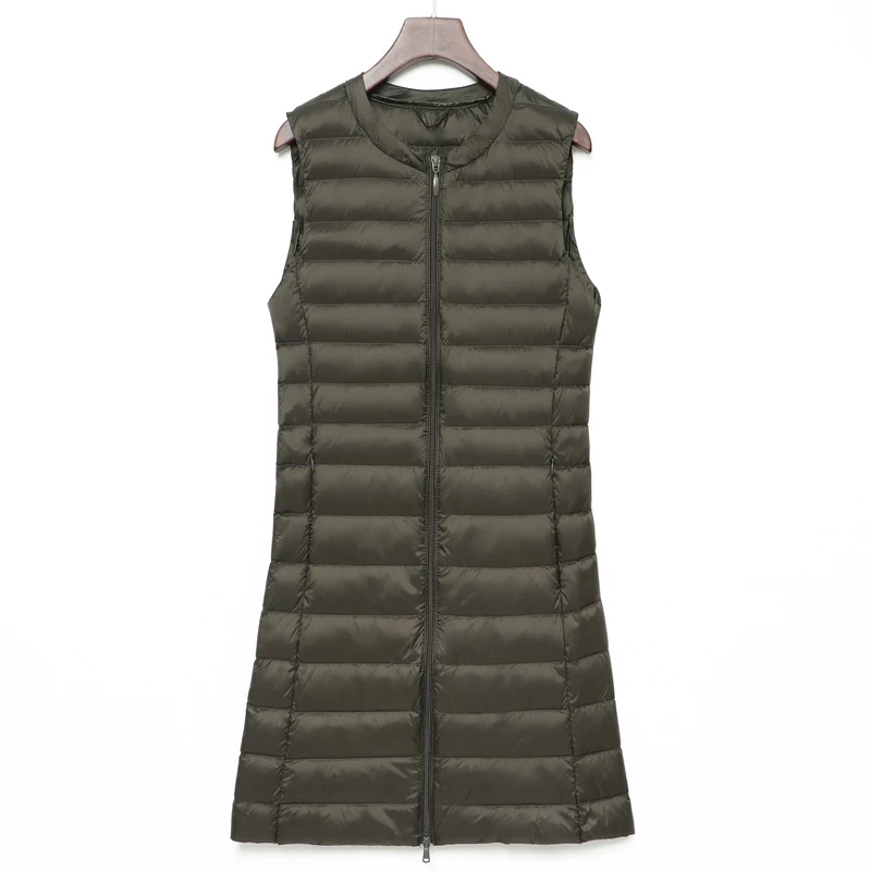 Новый зимний женский длинный жилет на белом утином пуху, Женский ульсветильник тонкий теплый жилет без рукавов, ветрозащитный Портативный жилет на молнии
