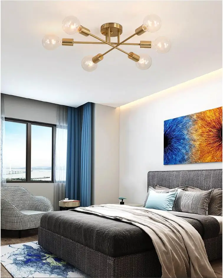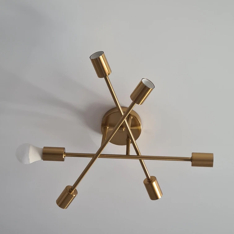 Современный потолочный светильник Sputnik s, Nordic, светильники с полуутапливаемым креплением, матовый античный золотой светильник, 6 светильник, домашний декор