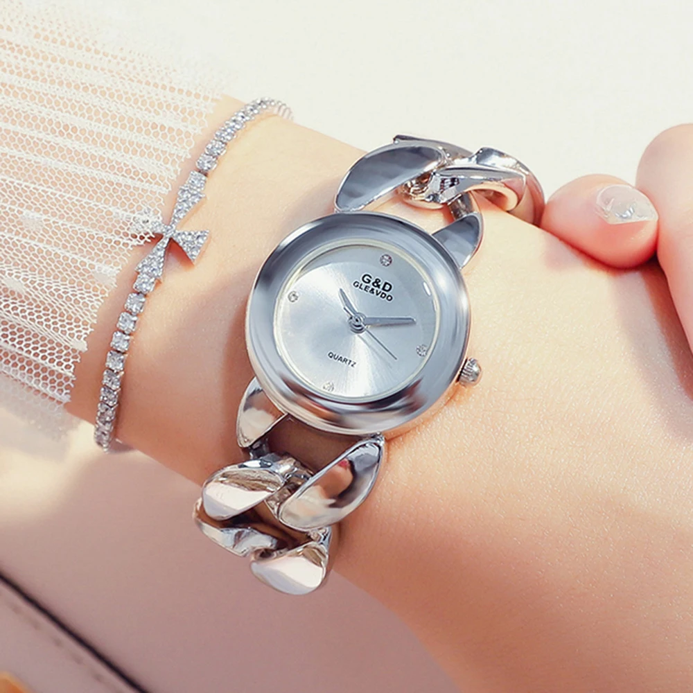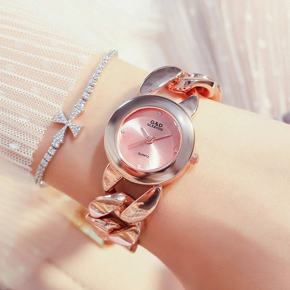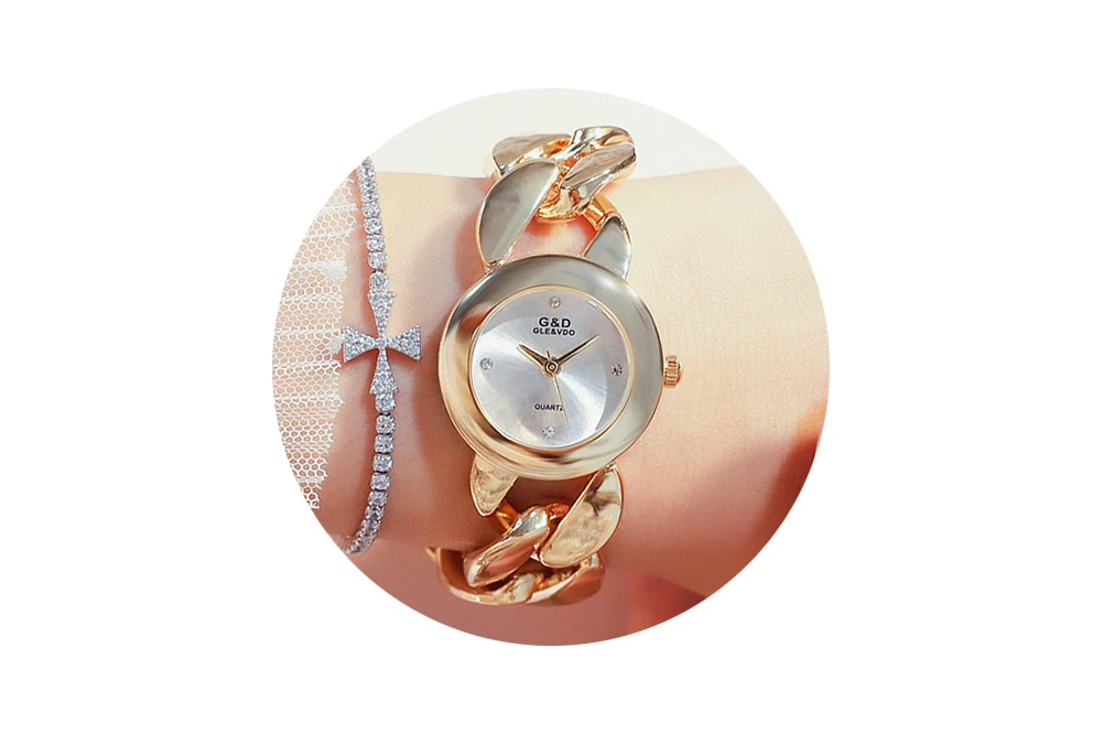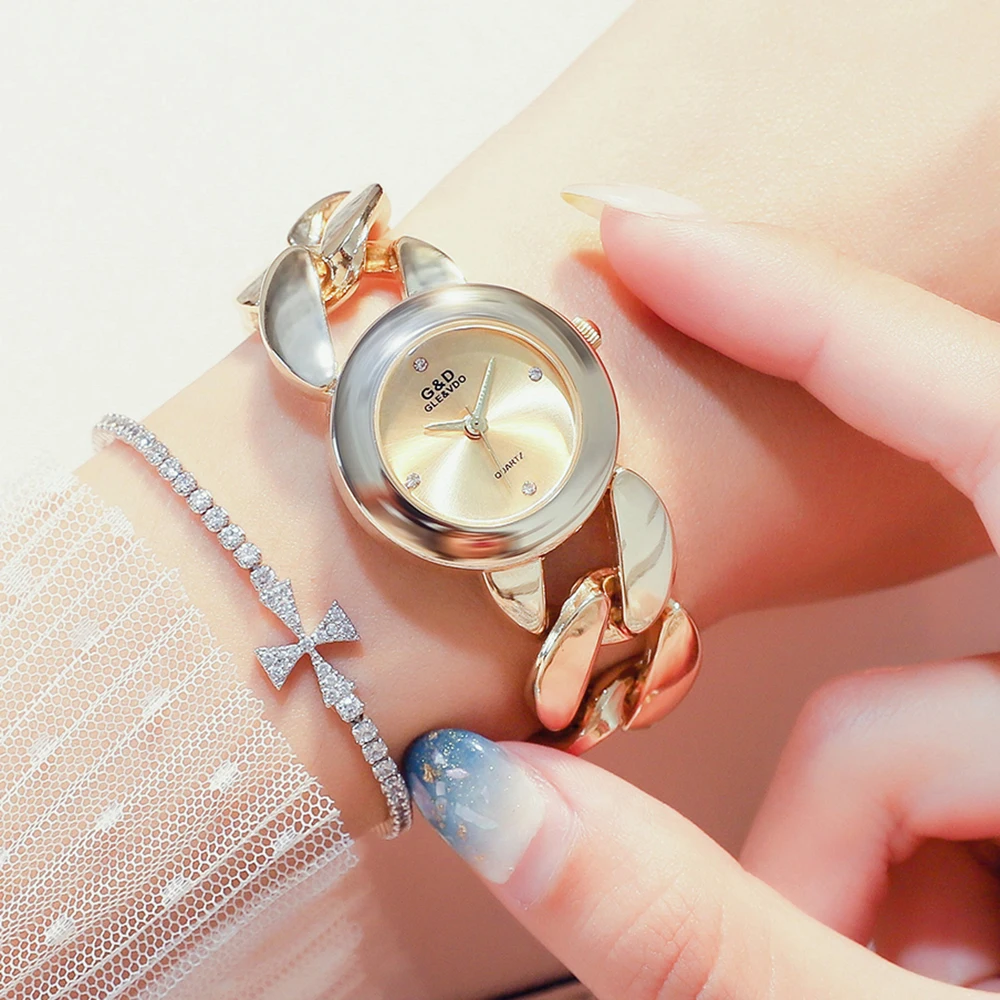 Женские кварцевые наручные часы GLE VDO, роскошные золотистые часы с браслетом, женские наручные часы, дизайнерские часы, женские часы