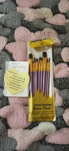 По факту 11шт в комплекте, и это все плюсы. Теперь к минуса, кисточки по качеству на 2 из 10 (отстрижены все не ровно, где-то пережатые от этого уже форма не плоская а такое ощущение как будто кистью рисовали месяц, где-то зажато так что кисть кривая, самая большая кисть и вовсе болтается.) короче минусы перекрывают все но если вам не столь важно качество тобрать можно, я брал для работы с сухой пастелью так что мне сойдет, а если рисовать акрилом или маслом, то не жалейте деньги на хорошие кисти. Как говорится что ждать от кистей за 200р
