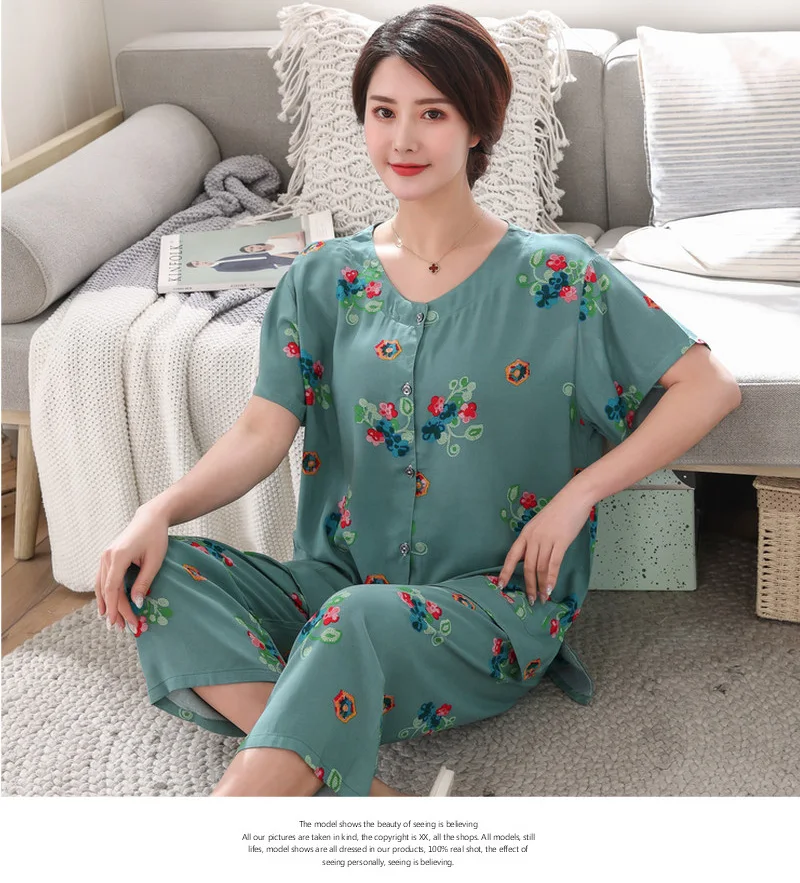 Пижамный комплект Женский хлопковый из 2 предметов, тонкая свободная Пижама с цветочным принтом, Повседневная Домашняя одежда, 3XL, на лето