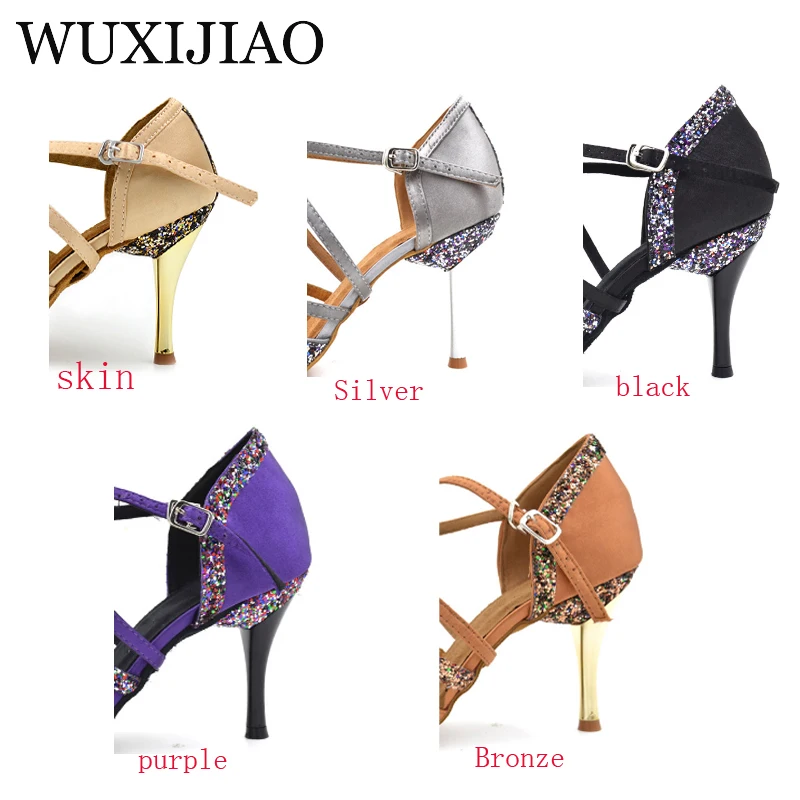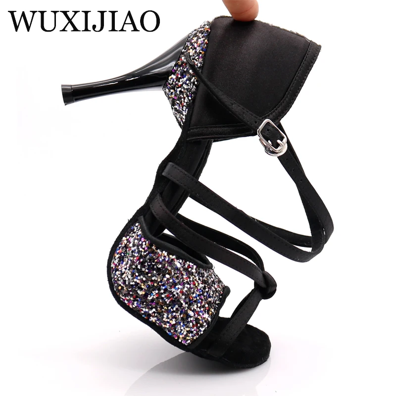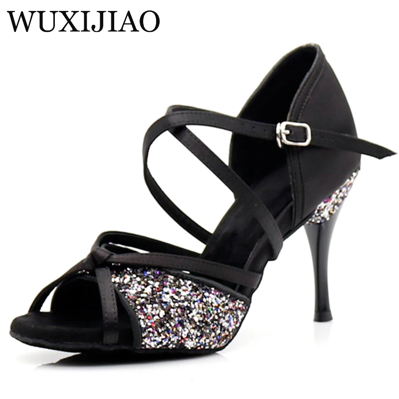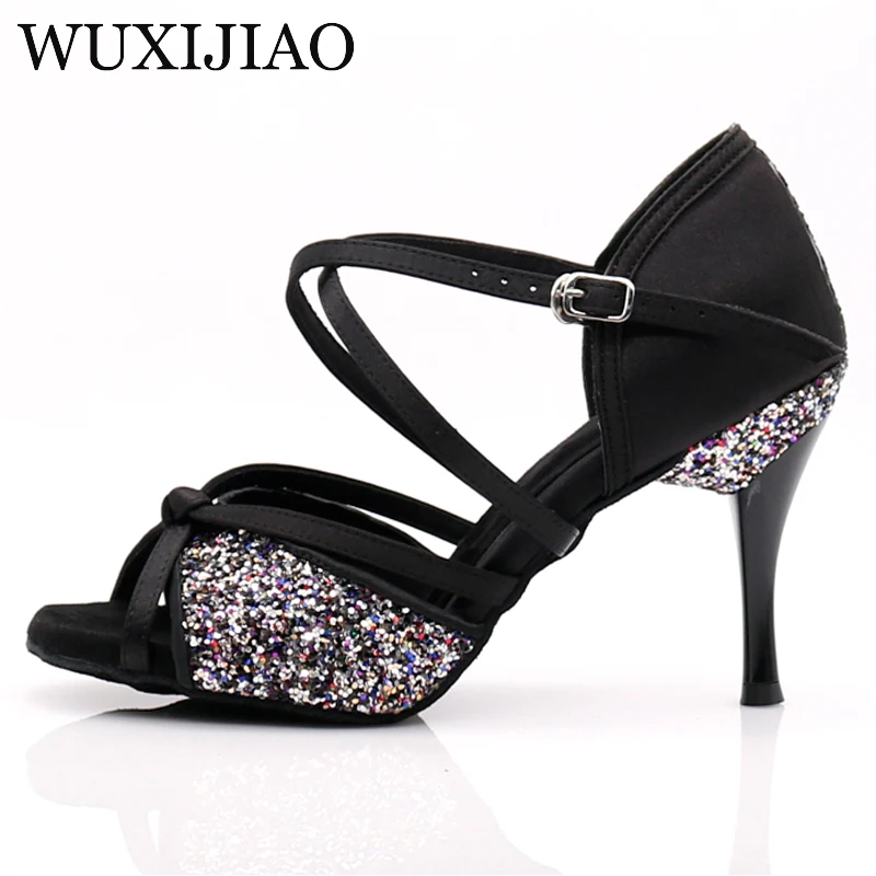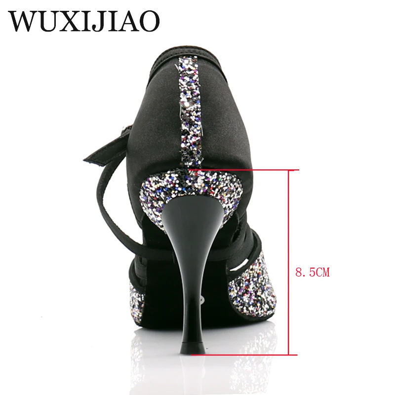 WUXIJIAOТанцевальная обувь для джаза, черная бронзовая кожа, обувь для латинских танцев для женщин, сальса, латинская Обувь для девушек, Бальные латинские туфли, каблук 8,5 см