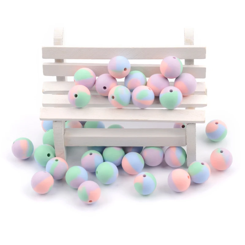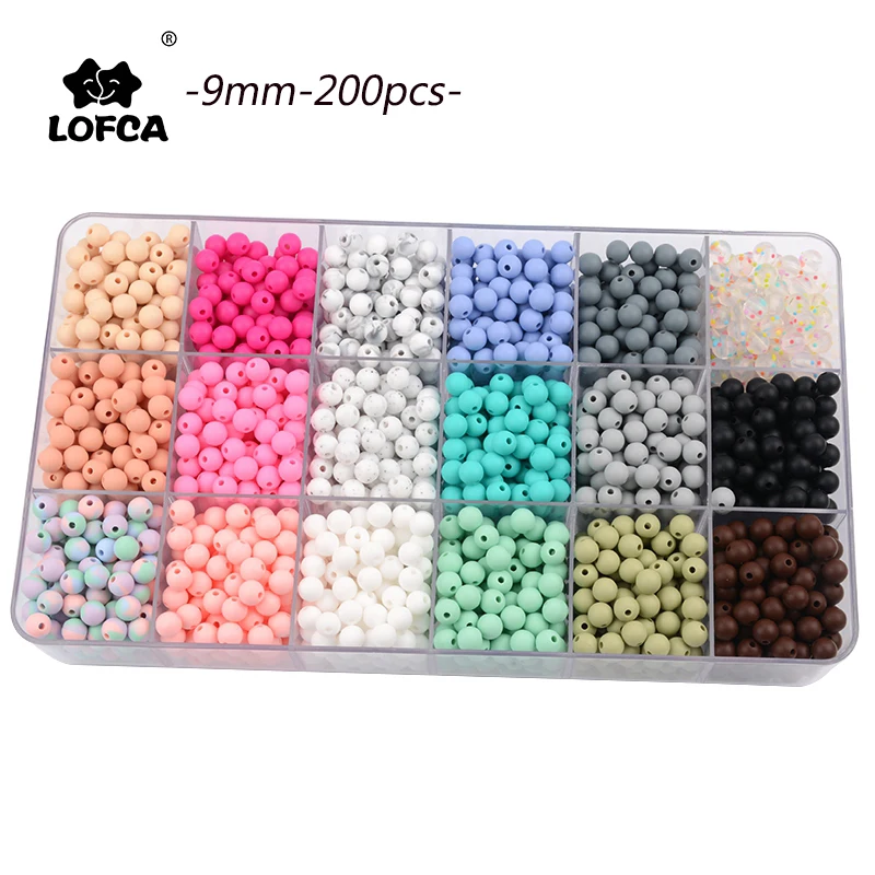 LOFCA оптовая продажа 200 шт.лот, силиконовые бусины 9 мм, свободные силиконовые бусины с краской для галстука, детские игрушки для прорезывания зубов, безопасны для BPA, ожерелье для прорезывания зубов сделай сам