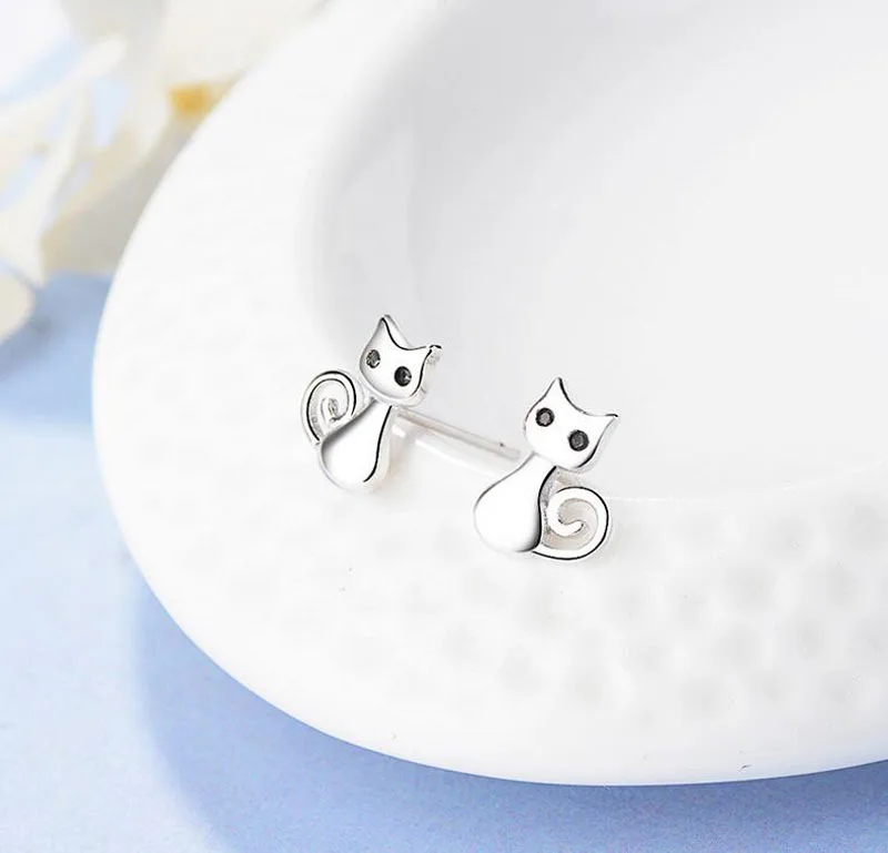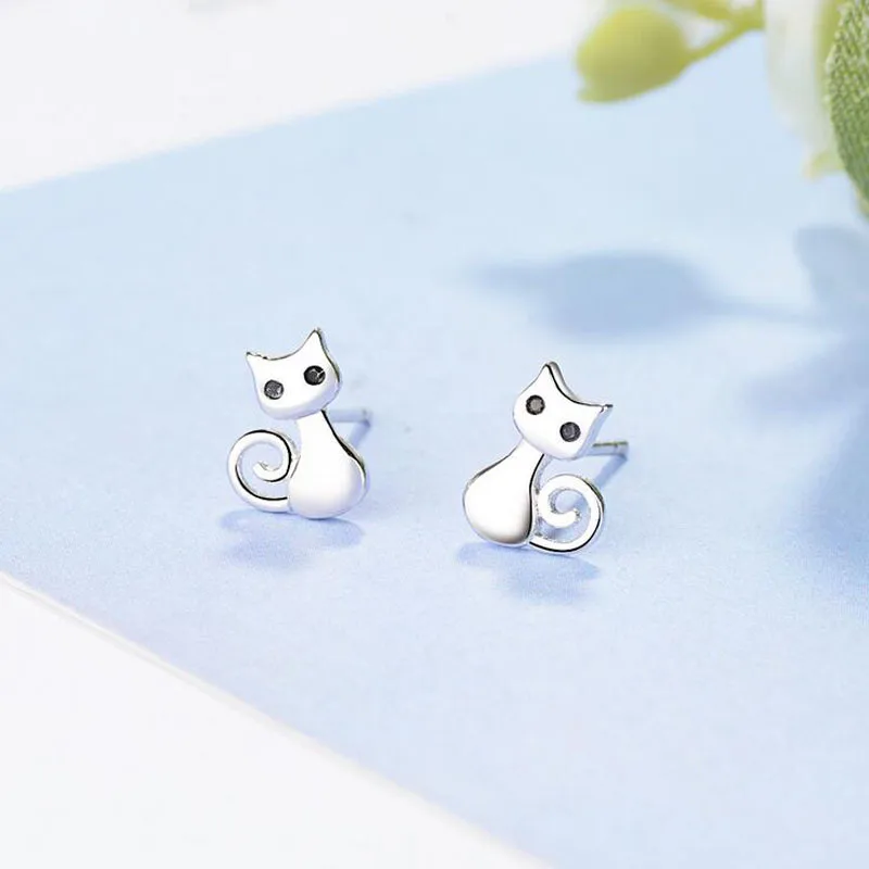 Женские Висячие серьги-гвоздики Cat, маленькие серьги из стерлингового серебра 925 пробы с липким котом, ювелирное изделие Sce450