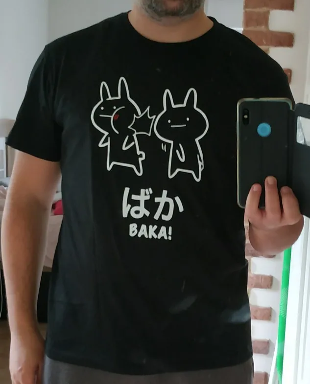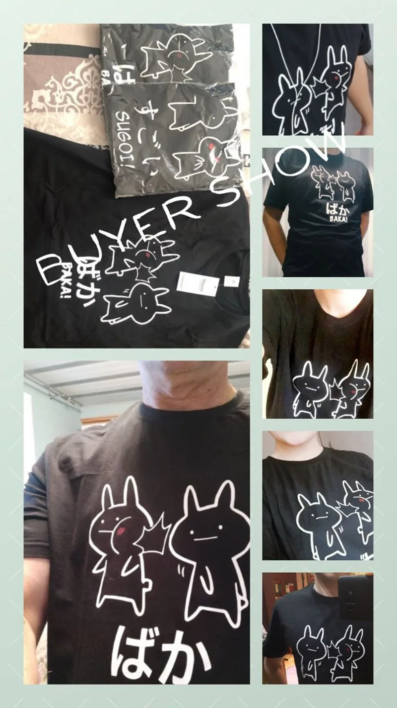 Эти футболки были заказаны и получены в том же размере, но «кролик Baka...» Футболка немного меньше.