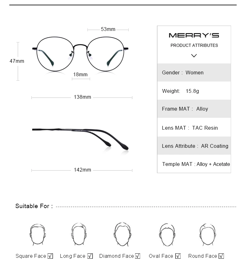Модные женские очки MERRYS, ультралегкие очки, винтажные очки по ре...
