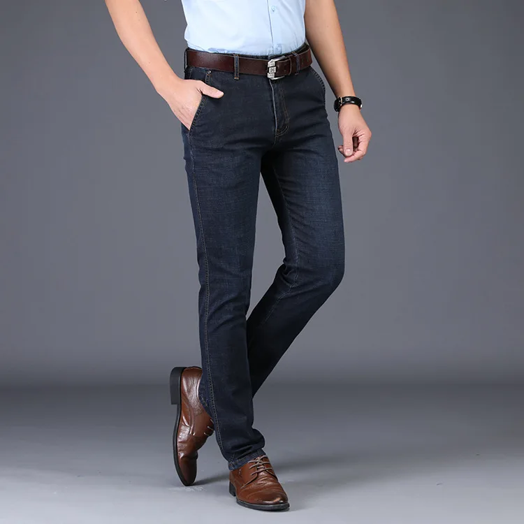 Джинсы ICPANS мужские стрейчевые, повседневные тонкие брюки из денима, прямые штаны в деловом стиле, черные, большие размеры 40 42 44, на лето