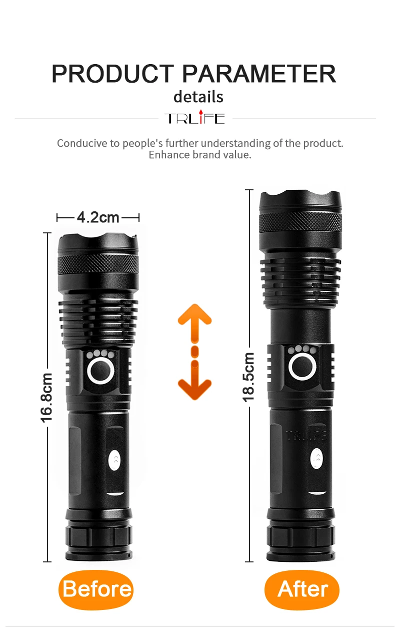 Как на фото и в описании,качество хорошее,гораздо больше чем на фото,под три вида аккумуляторов,свет яркий,без памяти включения режимы переключаются по кругу.В руке чувствуется мощь.Последнее фото в сравнении с обычным.