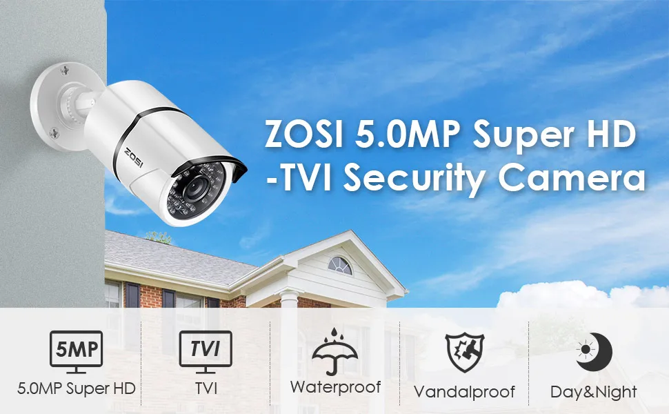 ZOSI 5-мегапиксельная камера наблюдения Super HD на открытом воздухе, 36 светодиодов, инфракрасное ночное видение 120 футов, пуленепробиваемая камера видеонаблюдения с защитой от атмосферных воздействий