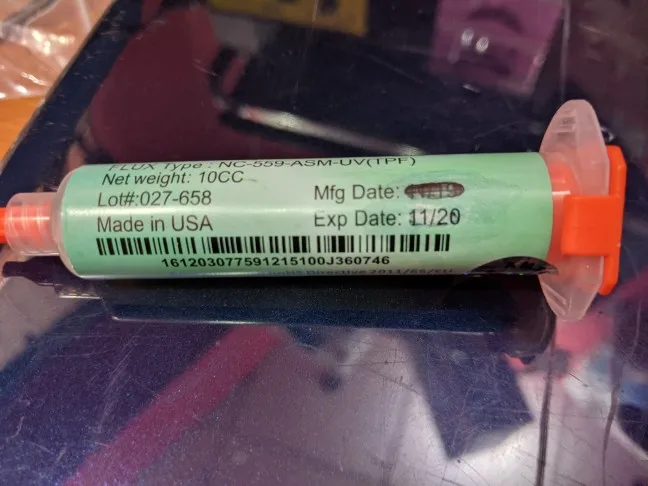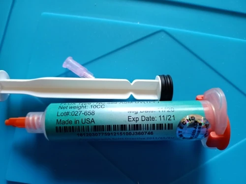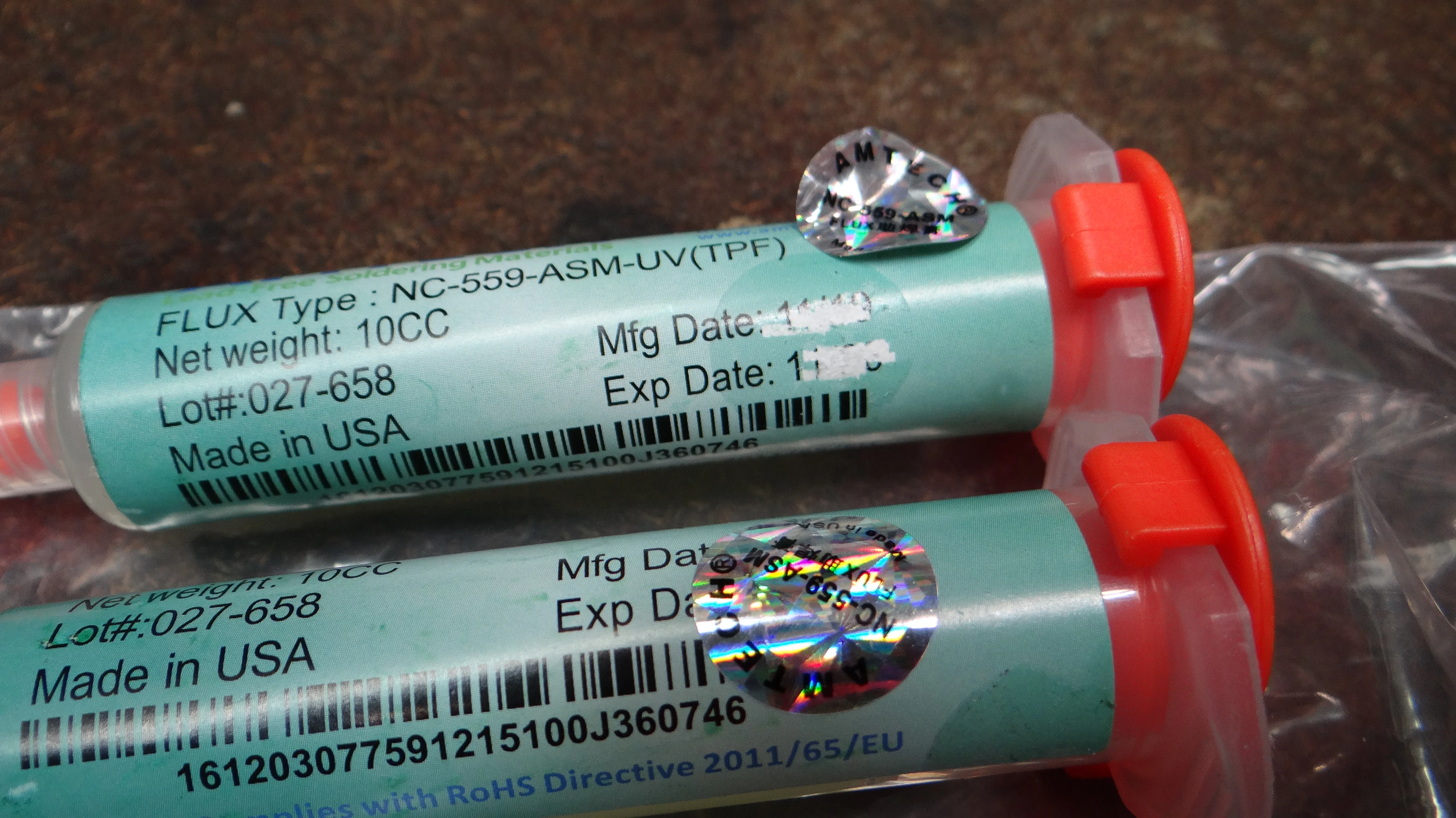 Товар соответствует описанию даже сроки годности как на фото. Заказывал просто тубы без плунжера и игл, но продавец прислал полным комплектом (Спасибо!). Единственное что беспокоит это зачирканые сроки годности и перекрепленная голограмма (ну и ладно), видимо большие запасы на складу а реализовывать нужно. Флюс облуживает контакты хорошо, запах не особо приятный, дымит мало, испаряется не плохо, не кипит - в общем пойдёт за свои деньги. Спасибо продавцу за полную комплектацию в качестве неустойки за сроки, удачи в бизнесе.