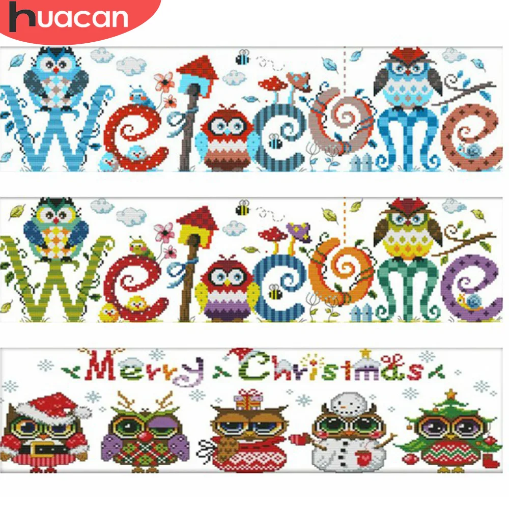 Алмазная вышивка HUACAN полностью квадратнаякруглая мультяшная Сова Алмазная мозаика 5D алмазная картина Стразы Рождественский подарок