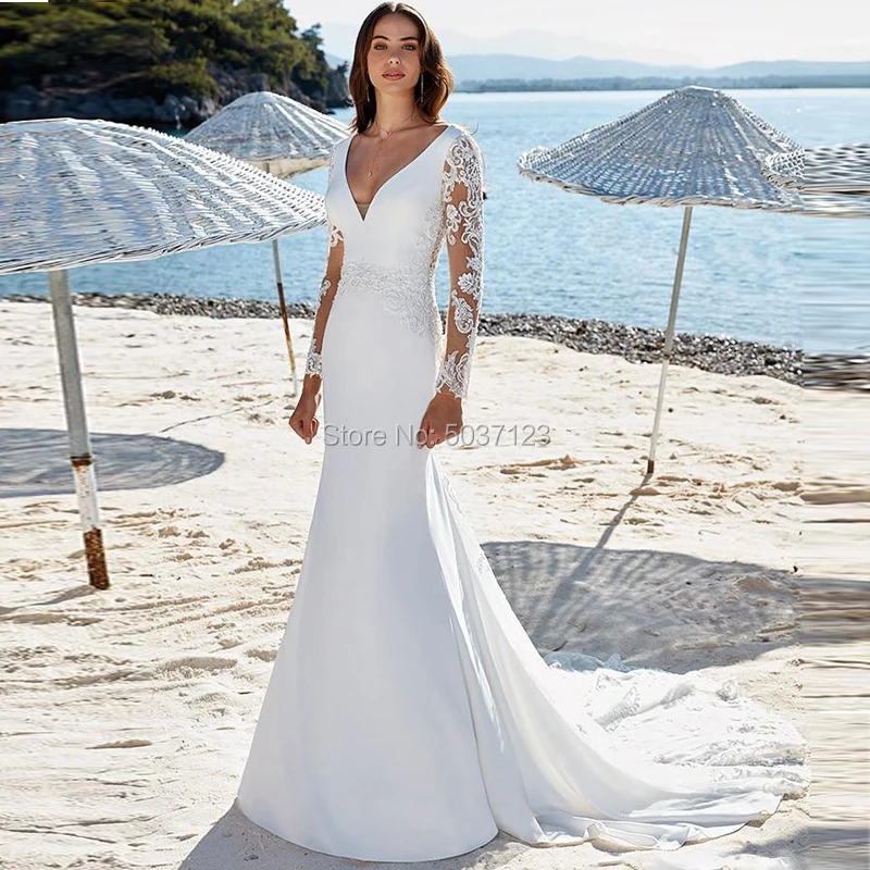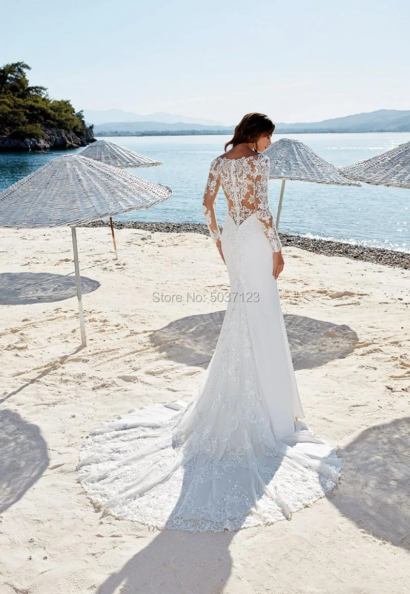 Свадебные платья Русалочки с глубоким v-образным вырезом и длинными рукавами с кружевной аппликацией и пуговицами сзади размера плюс Vestido De Novias Свадебные Платья