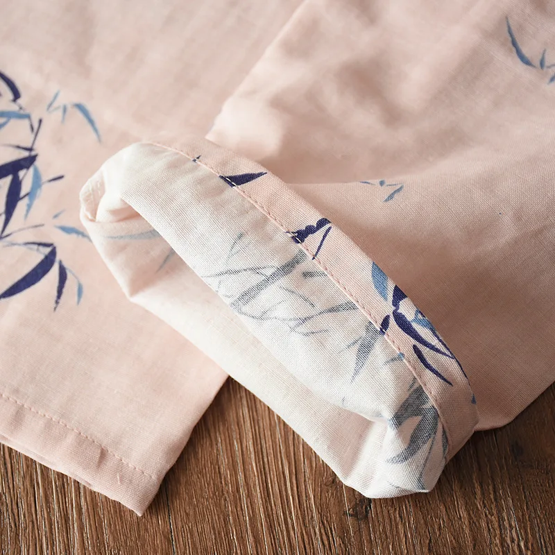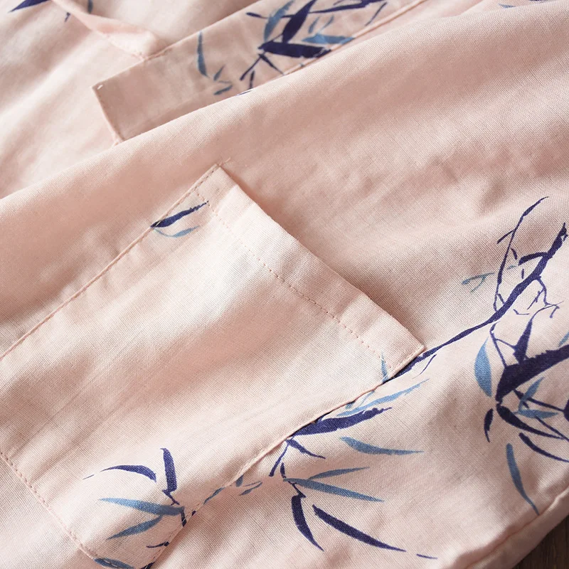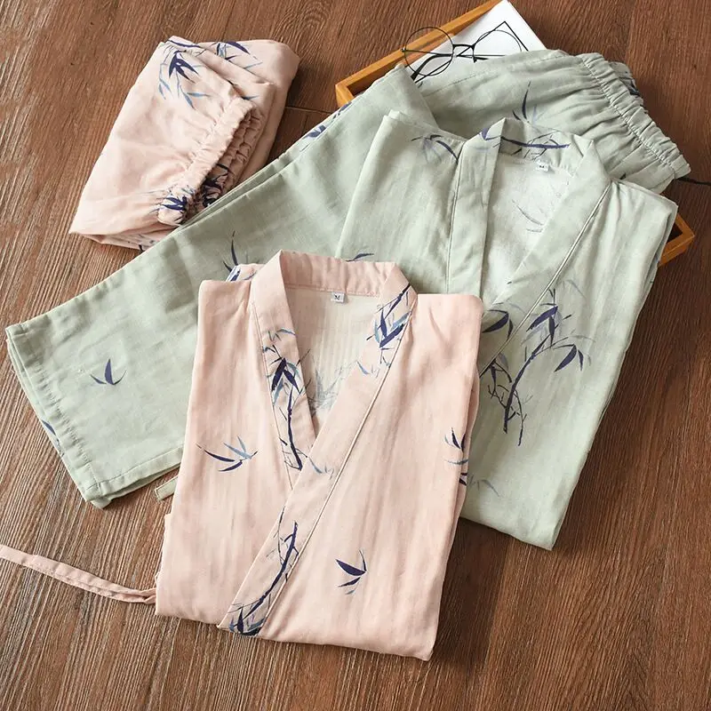 Кимоно женское с бамбуковым принтом, пижамный комплект в японском стиле, тонкий 100% хлопок, сохраняющий тепло халат, для дома, весна