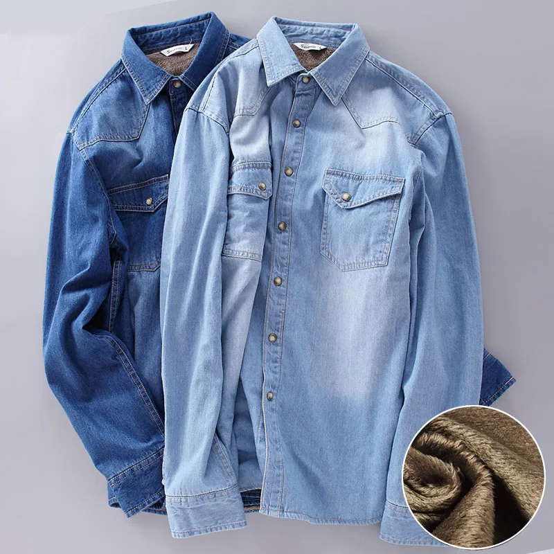 Мужская зимняя джинсовая рубашка, с флисовой подкладкой, 4XL
