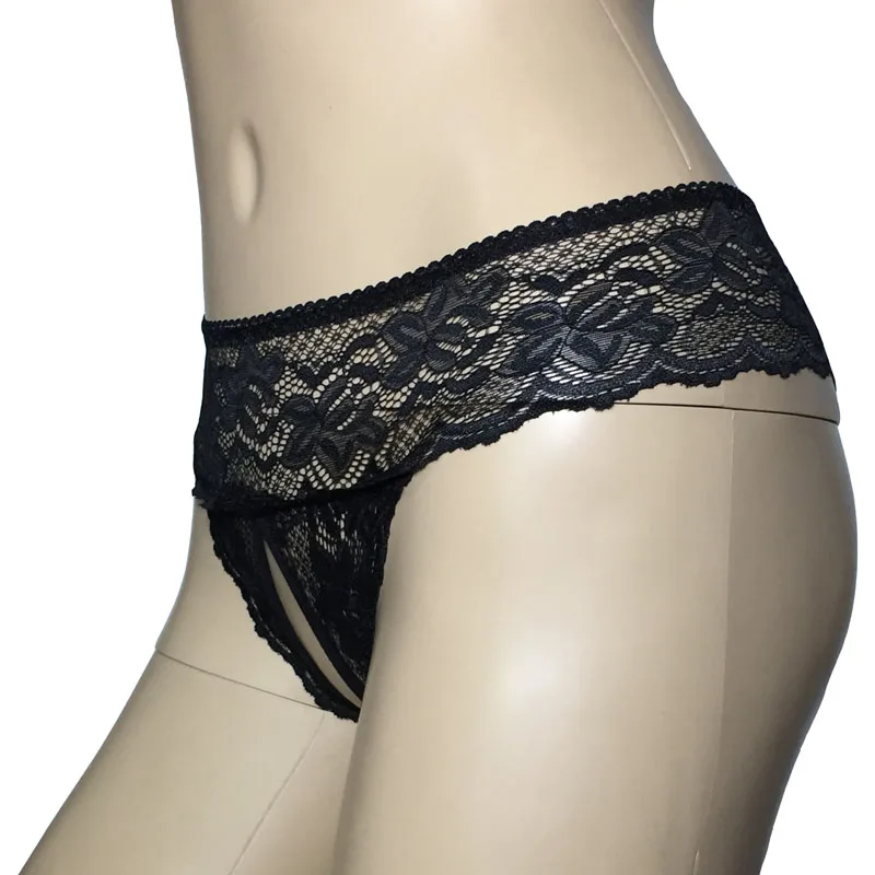 Трусики женские кружевные прозрачные с открытой промежностью, стрин...
