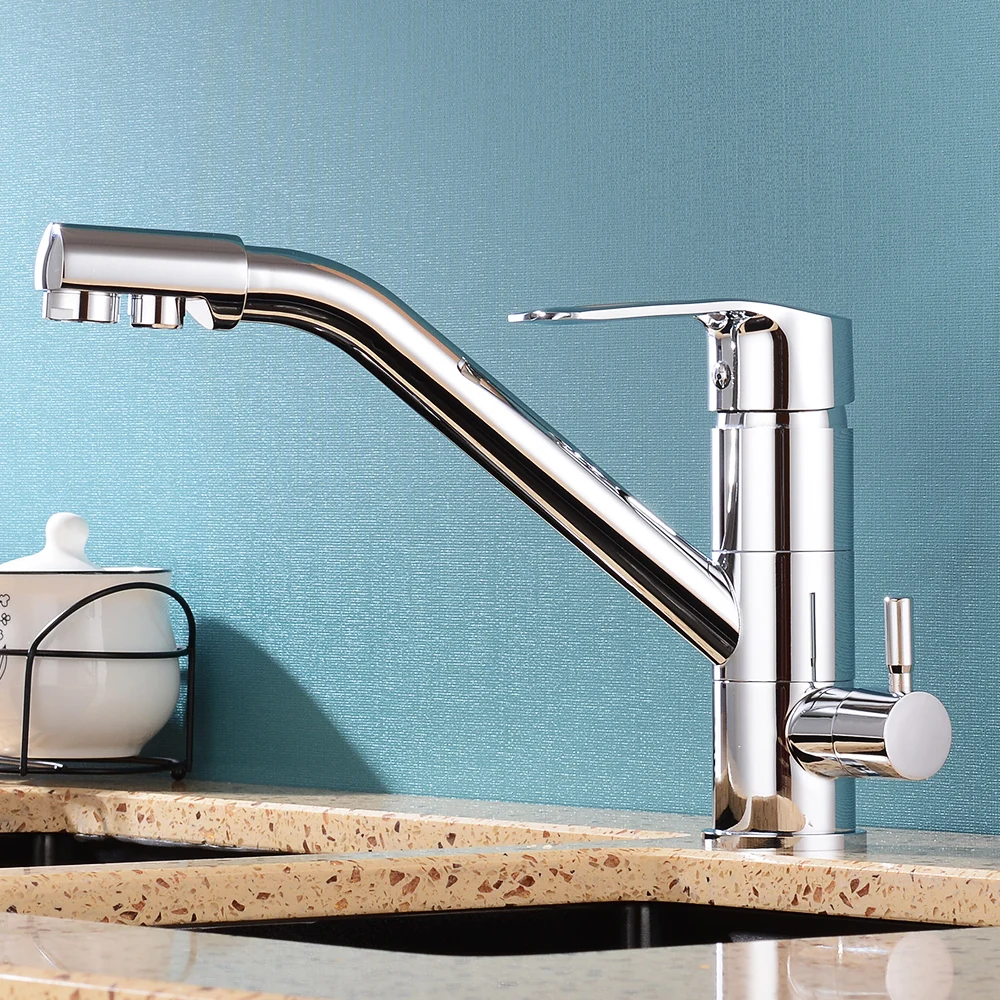 Смеситель для кухни с фильтрованной водой, Черный кран с поворотом на 360 градусов, для раковины