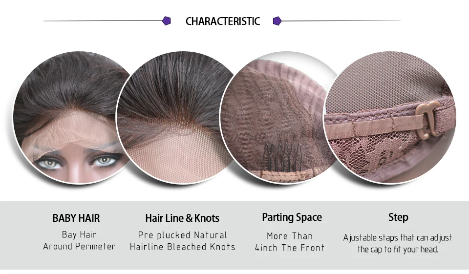 Наш парик с волосами ребенка по всему периметруЭто предварительно выщипанная натуральная волосяная линия, отбеливатель узловГлубокий и длинный пробор спередиРегулируемые ремни, которые могут регулировать крышку, чтобы соответствовать вашей голове.