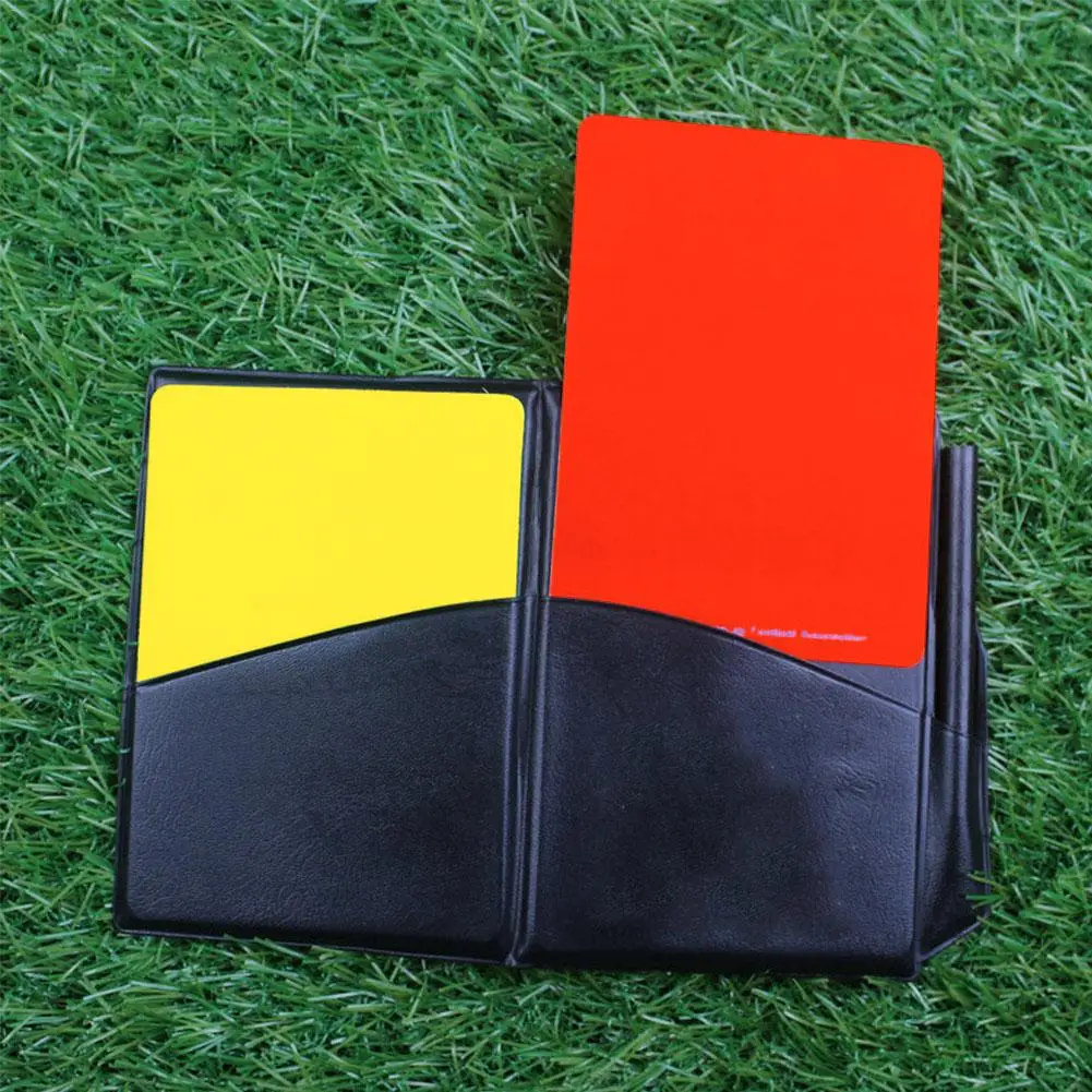 Флуоресцентная красно-желтая карта с кожаным бумажником записывающая бумажная карта для футбольного судьи записывающие красные желтые карты