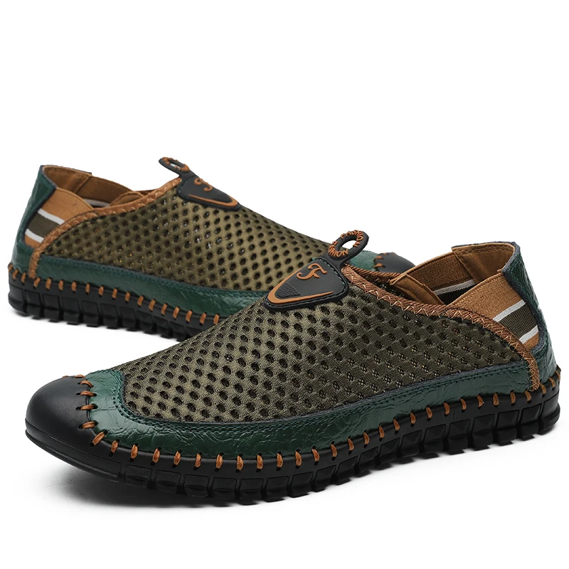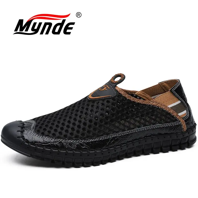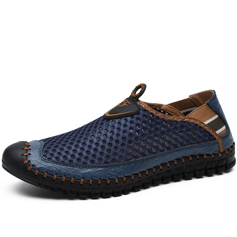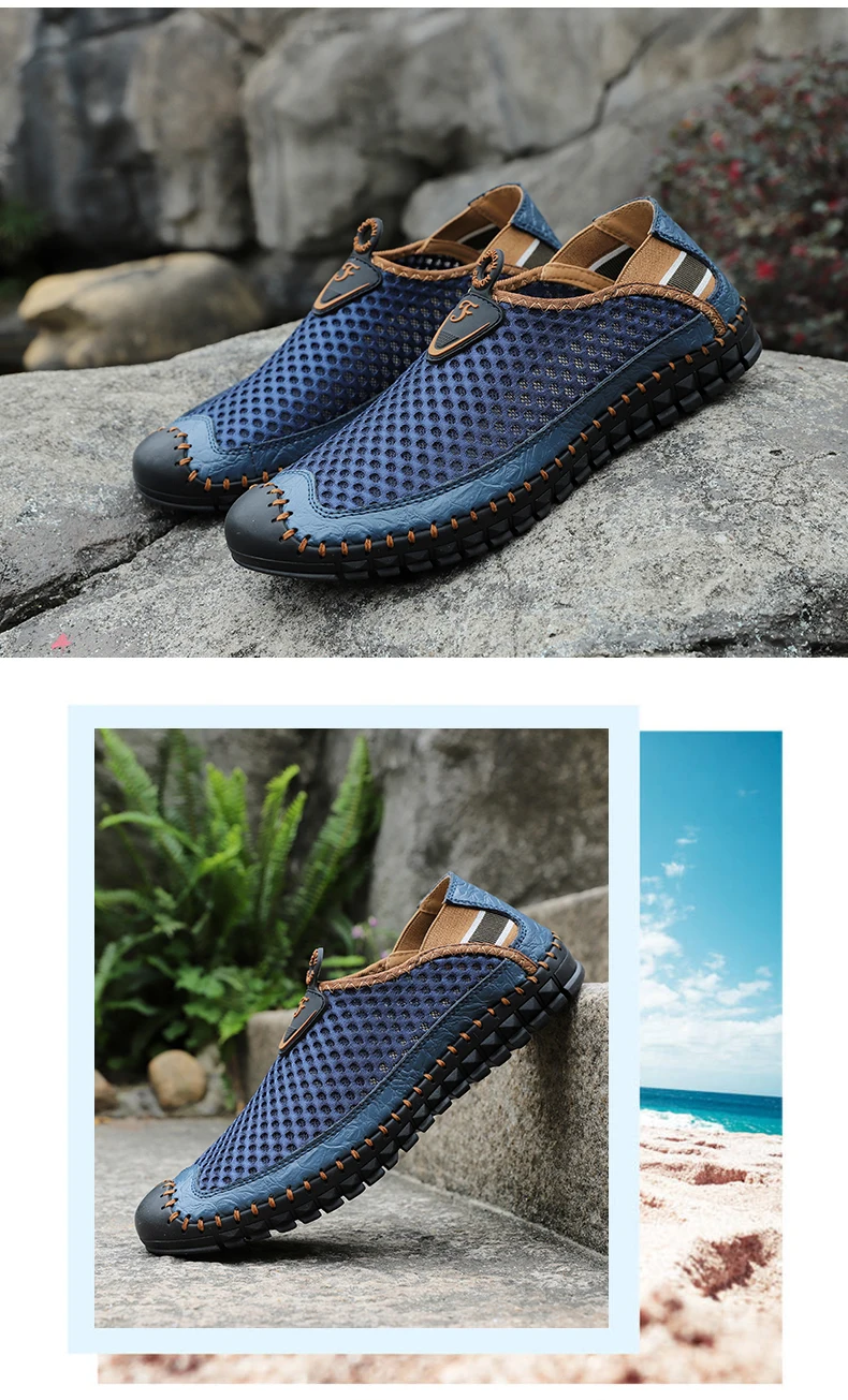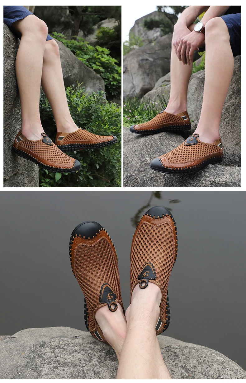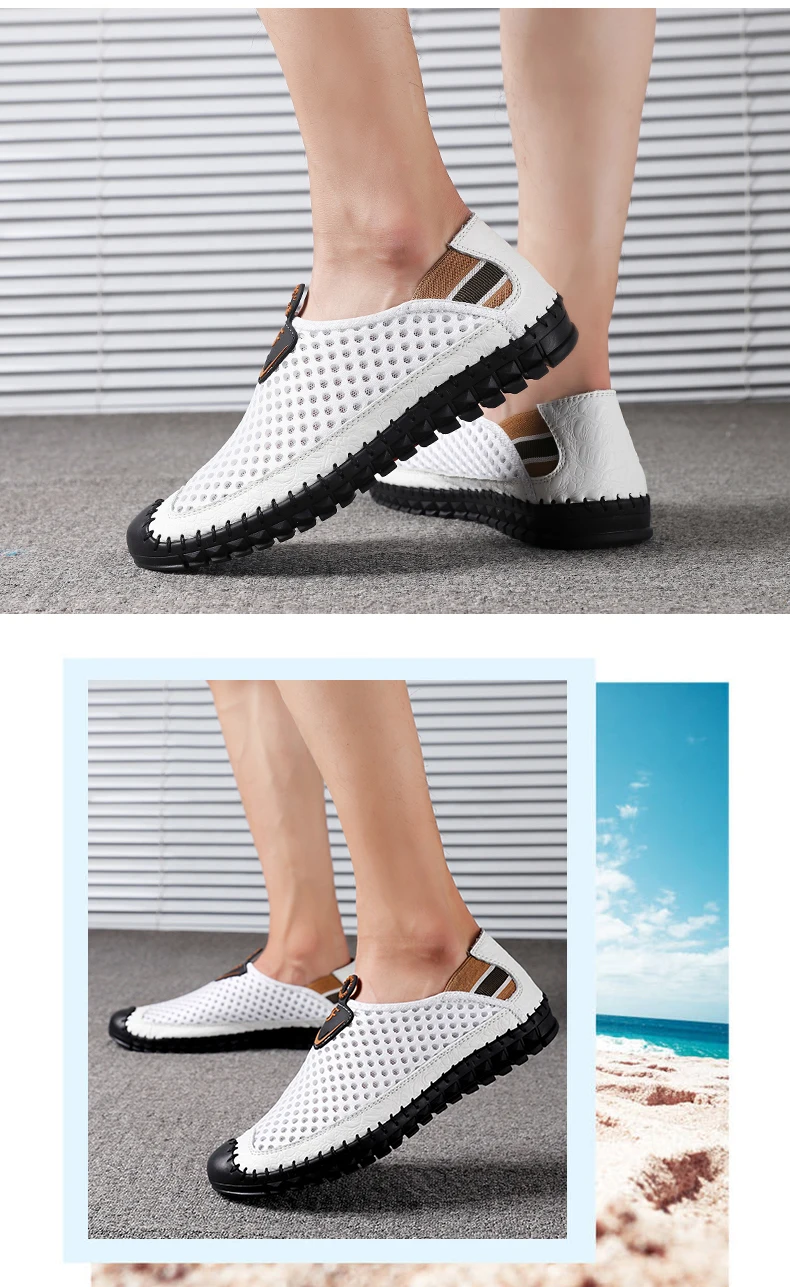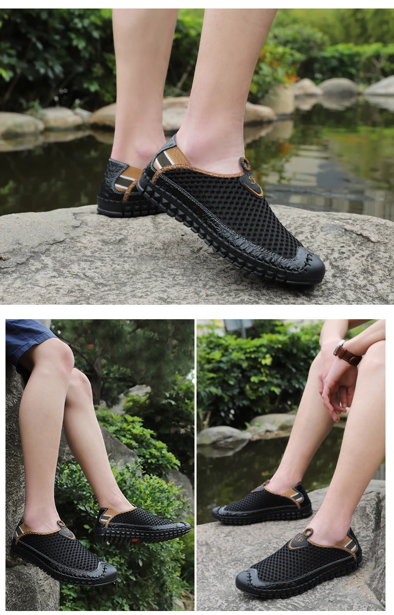 Новинка, повседневная обувь, мужские кроссовки, дышащая кожаная сетчатая мужская обувь, модные мужские мокасины ручной работы