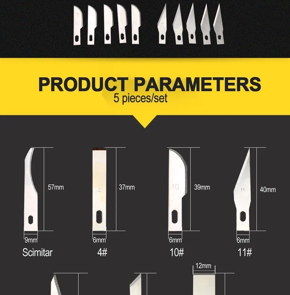 Лезвие для ножа, 5 шт., металлическое, лезвие для скальпеля, для творчества