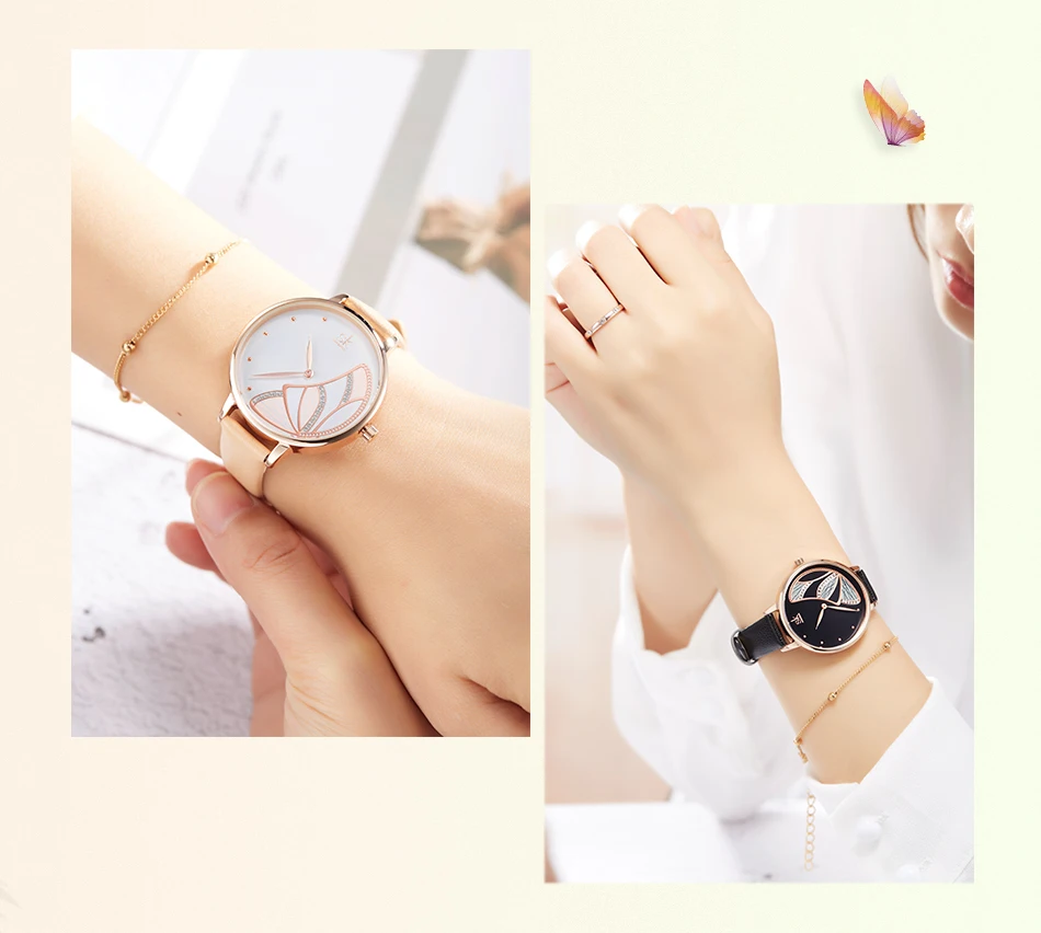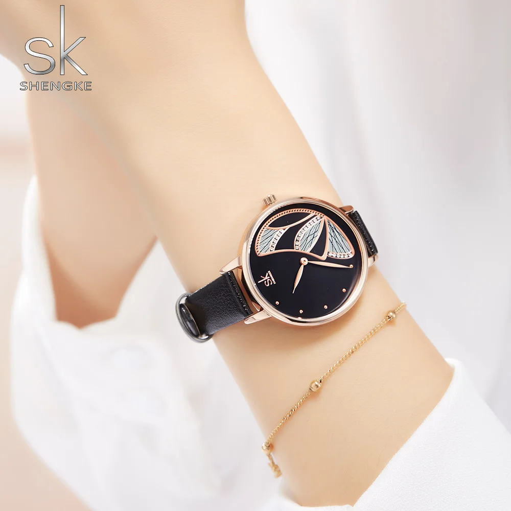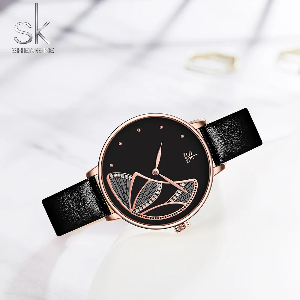 Часы наручные Shengke Женские повседневные, люксовые брендовые, простые Кварцевые водонепроницаемые