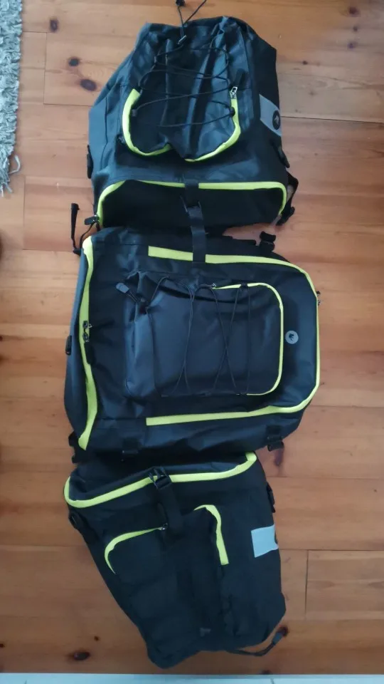 Товары, полученные quicly (полученные в течение 2 недель в Латвию), размер для боковых сумок может быть немного больше, так что мой ноутбук может иметь безопасное место на работе. Материал выглядит хорошо (он выглядит как водонепроницаемый, еще не проверил его, но выглядит очень многообещающим), прострочка может быть улучшена (есть несколько мест, где были Висячие швы), молнии выглядят водонепроницаемо, но их открытие/закрытие в углах сложно (так как мешки были компактно сложены, молния трудна в тех местах, где можно двигаться). Расстраивается в том, что одна из полосок для боковых сумок отсутствует (для использования как сумка-Болванка, я наделась, чтобы иметь 2 полоски (1 для каждой сумки), но после проверки всей сумки и всех карманов была только 1 полоска). Система как положить сумки на велосипед легко.