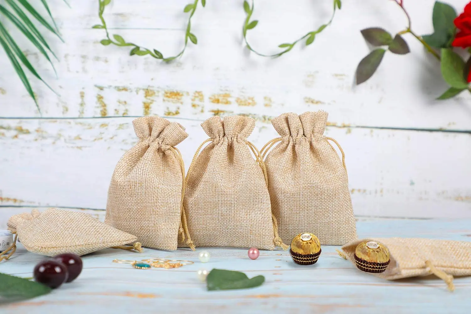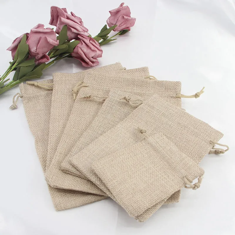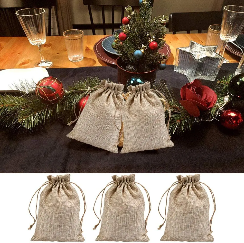 10 шт. винтажные джутовые пакеты из натуральной мешковины, льняные подарочные пакеты на шнурке, сумки, сувениры для вечеривечерние, сумки для подарков, товары Вечерние