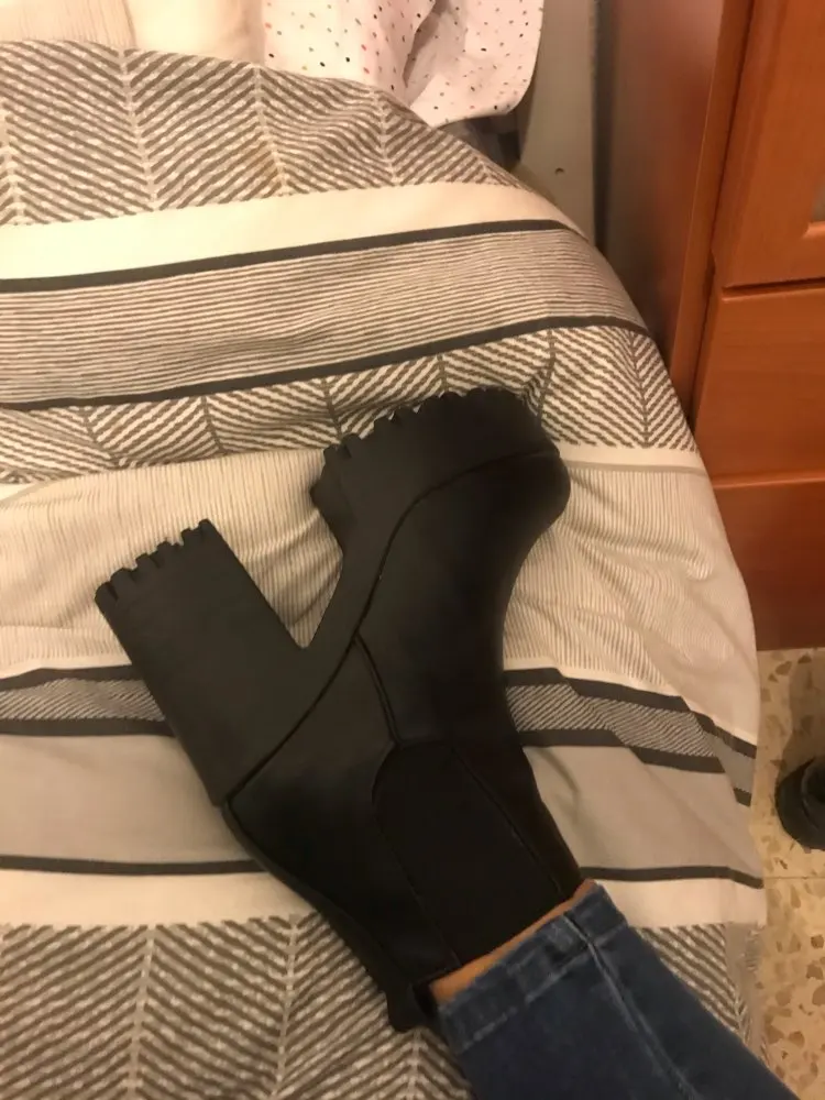 У этих ботинок хорошее качество, я думаю, но размер немного отличается. Очень, очень маленький. Я уже купил на один размер больше, чем у меня, но все равно он не подходит.