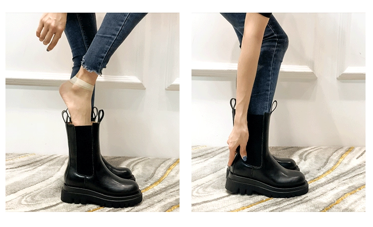 Ботинки Челси, 2020, женские кожаные ботинки, ботильоны на толстом каблуке для женщин, зимняя обувь с круглым носком, женские ботинки на плоской платформе