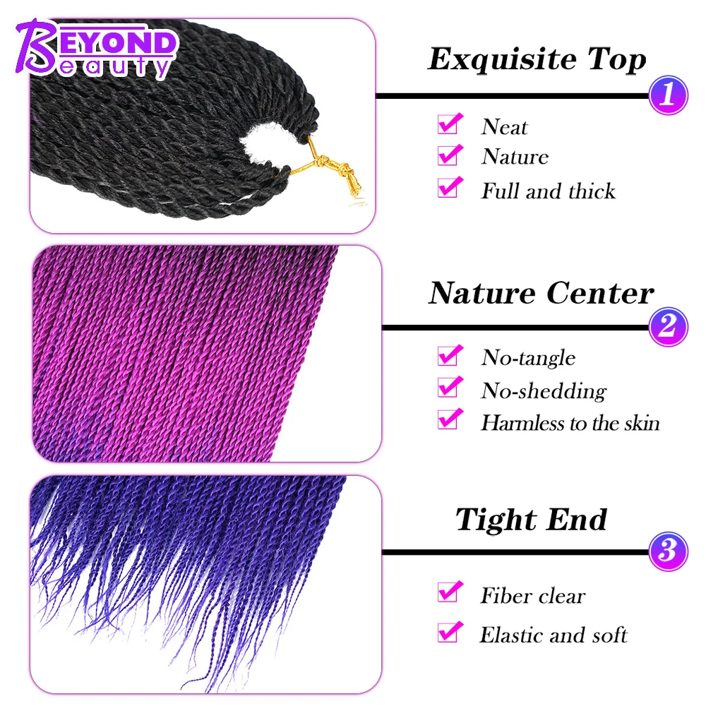 Синие и фиолетовые волосы, Сенегальские закрученные волосы, 24 дюйма, вязаные крючком синтетические плетеные волосы для африканской женщины оптом