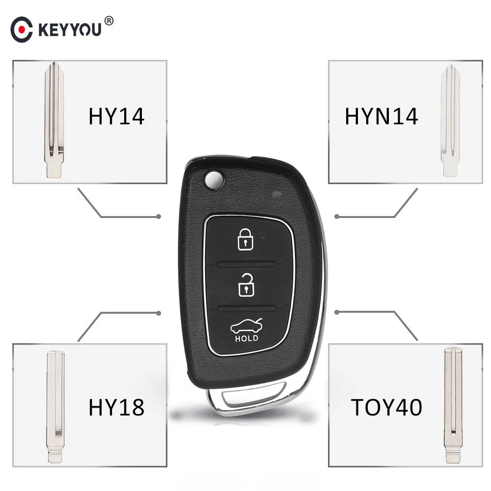 KEYYOU 3 кнопки складной откидная оболочка ключа дистанционного управления чехол автомобильный смарт ключ-брелок необработанное лезвие для Хендай i10 i20 i30 i35 i40 IX45 Genesis
