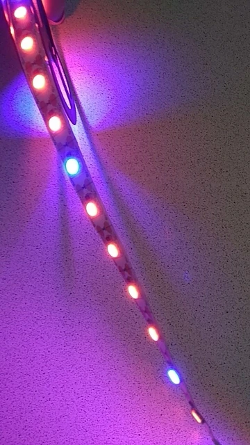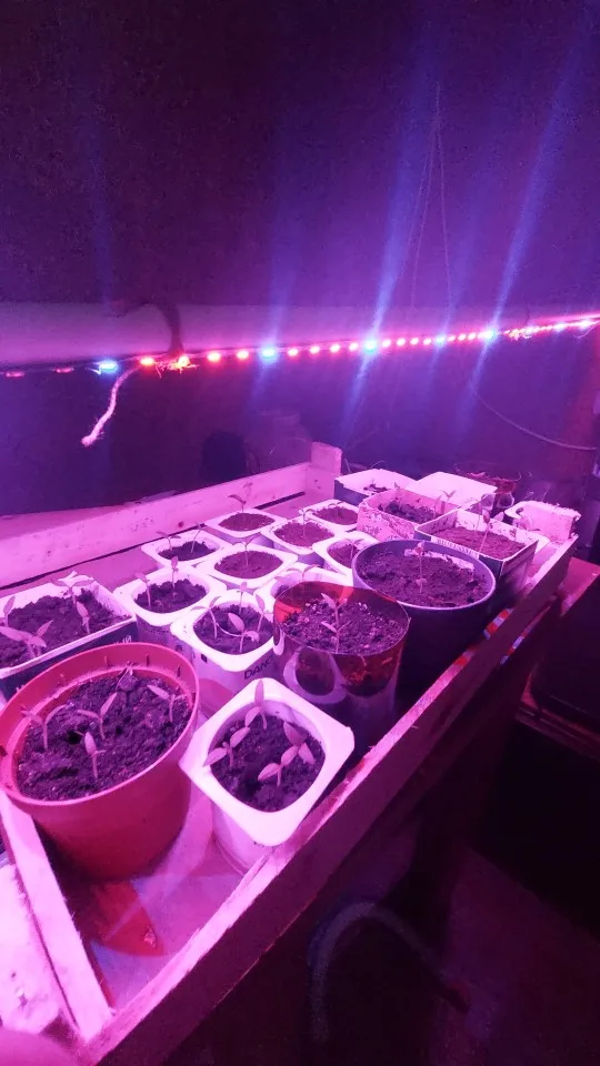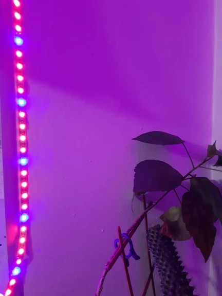 светит ярко, два цвета розовый и фиолетовый, светодиодики чередуются 2/1, не знаю на сколько это будет эффективно, но предыдущая светила на ура, растения прям ощущали. поработает - дополню отзыв если получится