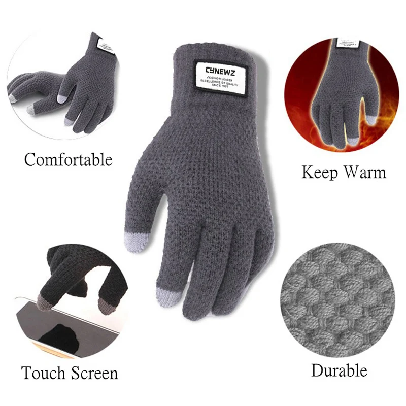 Зимние мужские вязаные перчатки, высококачественные мужские варежки для сенсорного экрана, плотные теплые шерстяные кашемировые однотонные мужские деловые перчатки на осень