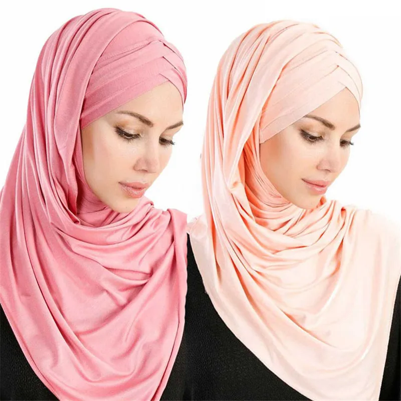 2019 женский простой пузырьковый быстросъемный хиджаб, сплошной шали из фуляра, женские мусульманские хиджабы, Магазин готовых к ношению