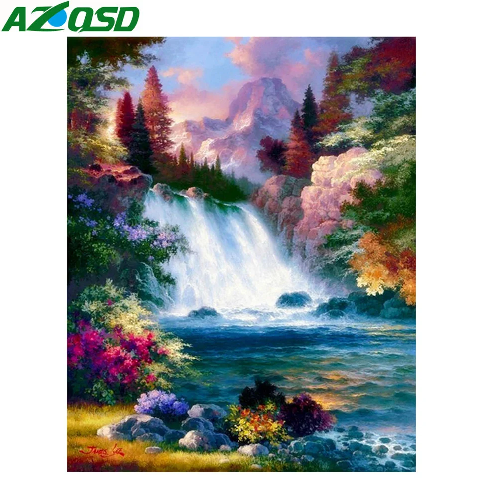Алмазная живопись AZQSD, полноформатная картина Стразы с пейзажем, домашний декор, мозаика из страз, вышивка крестиком, ручная работа