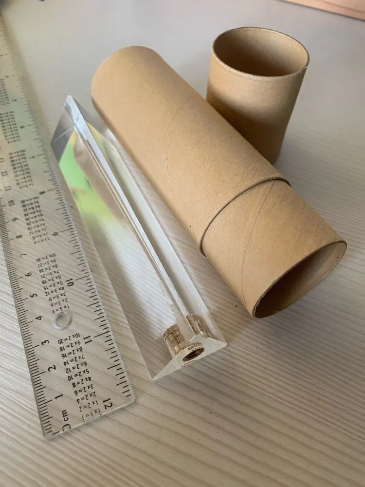 Доставка очень быстрая. Заказала 25 ноября. 4 декабря был заказ на почте. Упакован хорошо. Сама призма в картонном тубусе. Очень удобно, что ручка может быть использована как подставка