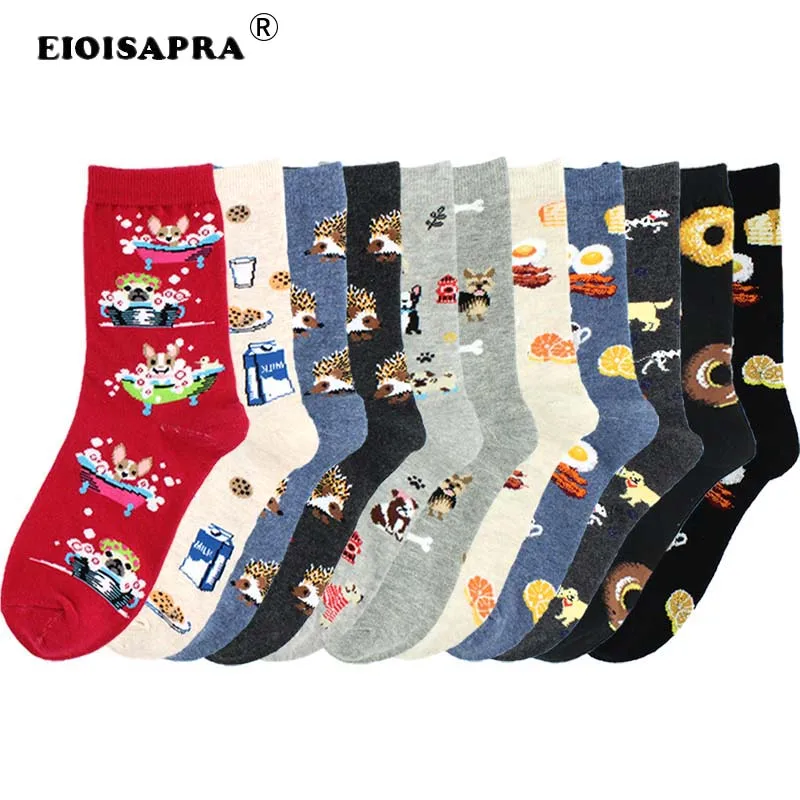 Носки женские SOPLCAALCK, Милые Носки с рисунком ежика, собаки на з...