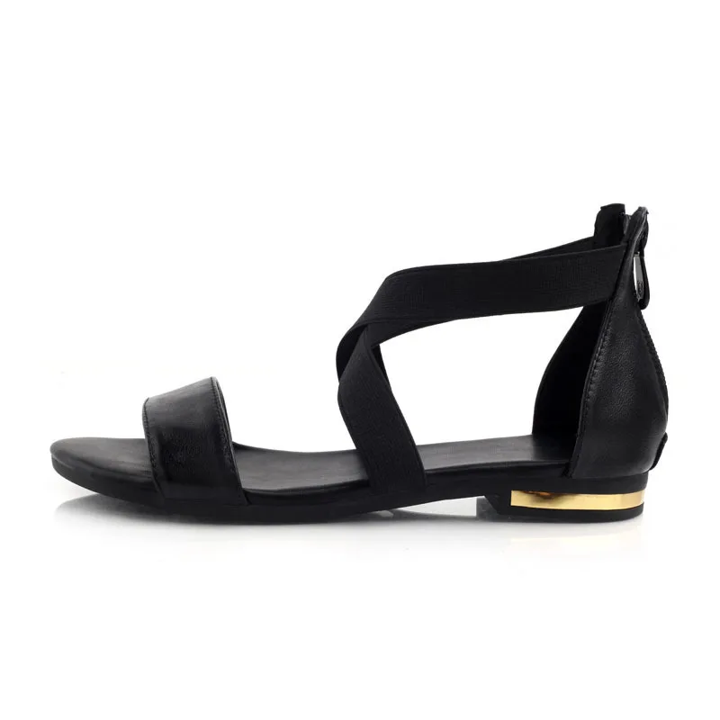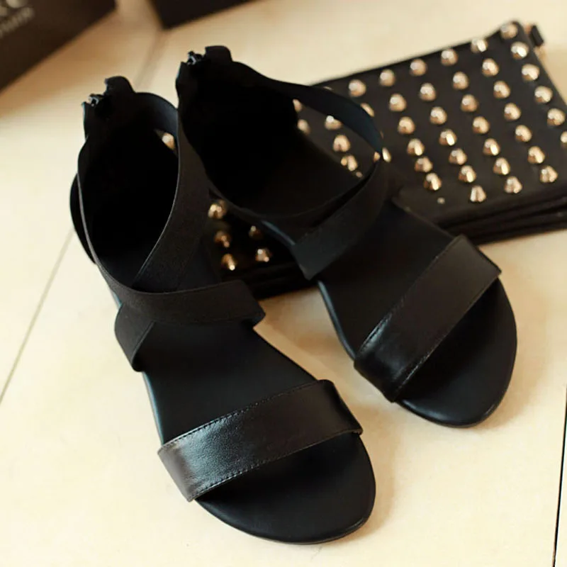 Женские босоножки из натуральной кожи, черные босоножки на плоской подошве, лето 2019