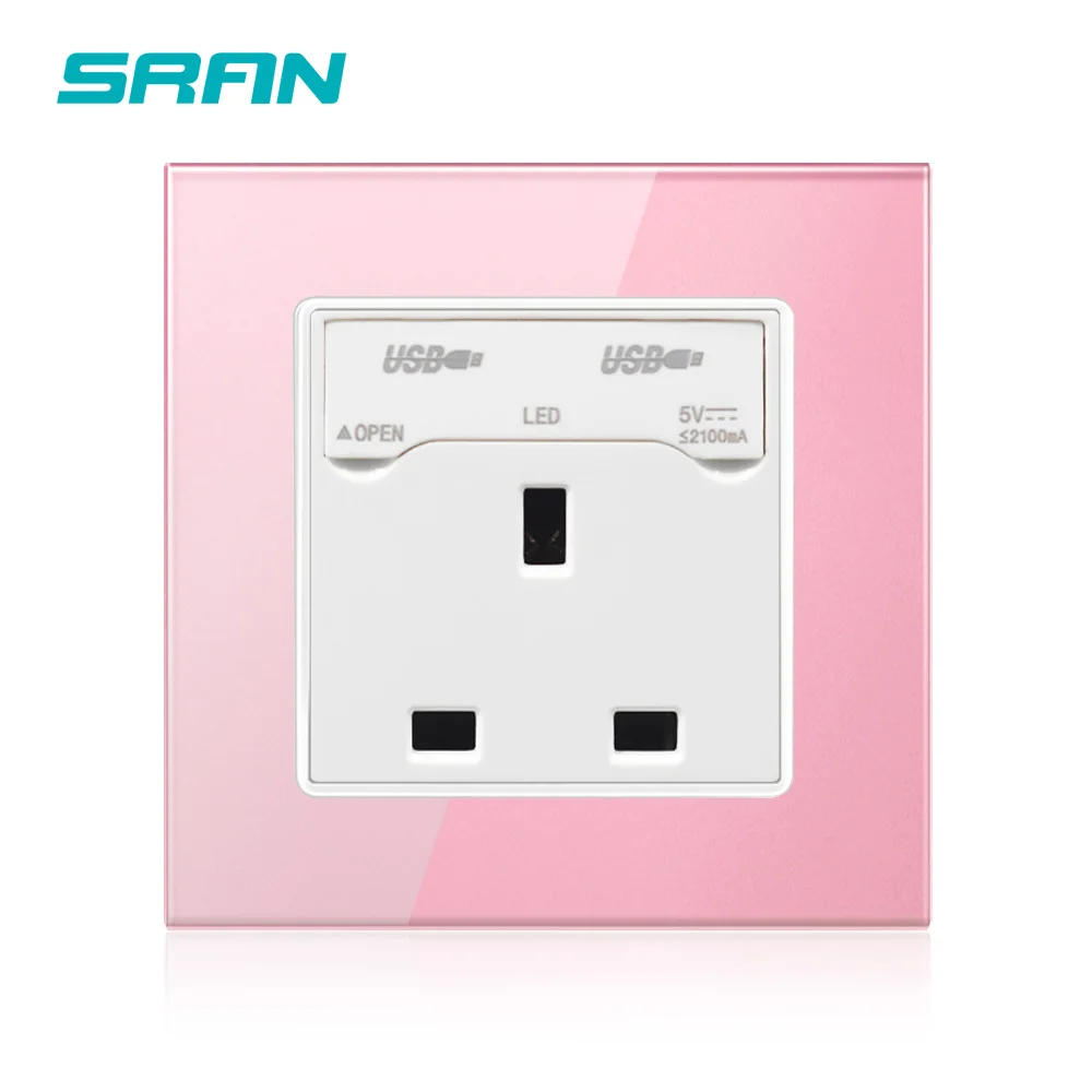Розетка настенная SRAN со стеклянной панелью, электрическая, 13 а, со штепсельной вилкой Стандарта Великобритании и 2 USB-портами мА