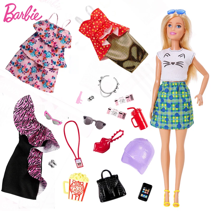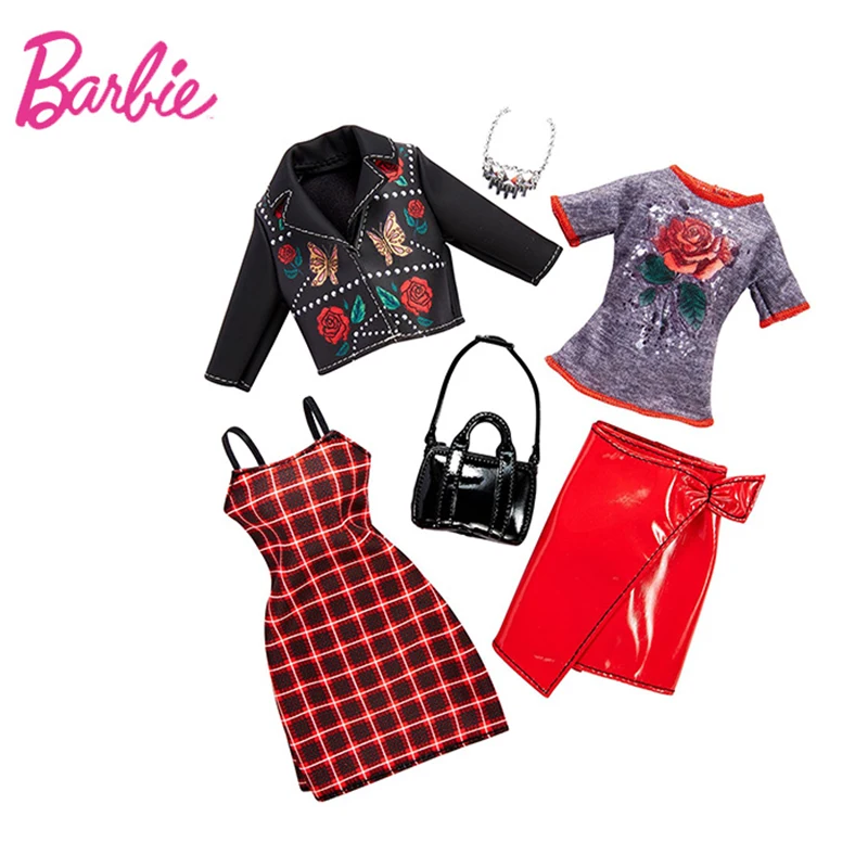 Оригинальная Одежда для кукол Барби, платье, сумка, обувь на высоком каблуке, ожерелье, сменный набор одежды, игрушки для девочек, модные аксессуары