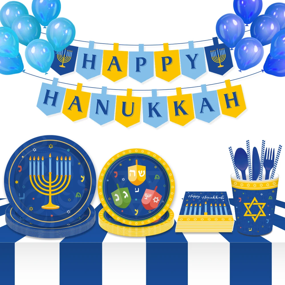 Hanukka Chanukah украшения для тематических вечеринок наборы тарелок, салфеток, чашек, одноразовая посуда, сувениры для вечеринки на 8 человек