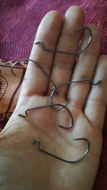 На удивление очень тонкие для китайцев крючки использую на 56мм вмброхвосте сталь мягкая если подцепите корягу есть шанс что разогнете